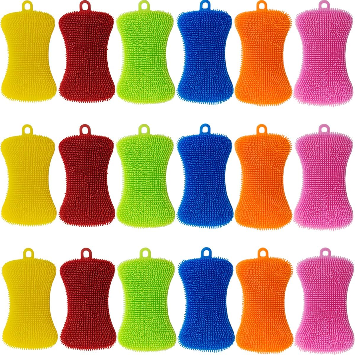 - Package include: 18PCS silicone dish washing sponges. (6 colors in total, 3pcs for each color)