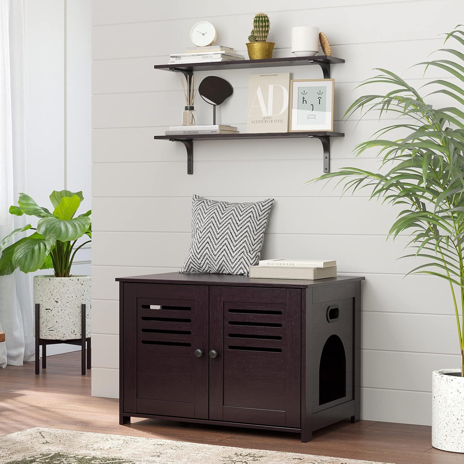 DINZI LVJ Long Wall Shelves, 23.6 Inch Wall Mounted Shelves Set of 2, Easy-to-Install, Wall Storage Ledges with Sturdy Metal Brackets for Living Room, Bathroom, Bedroom, Kitchen, Espresso