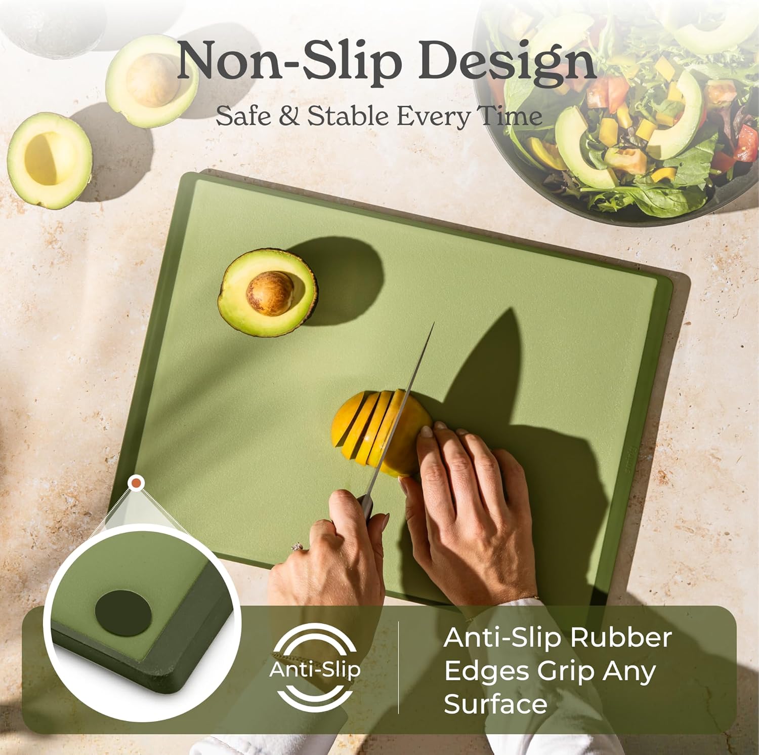 SMIRLY Plastic Cutting Board Set 3 Pieces, Non-Slip Dishwasher Safe Chopping Boards for Kitchen, Green
