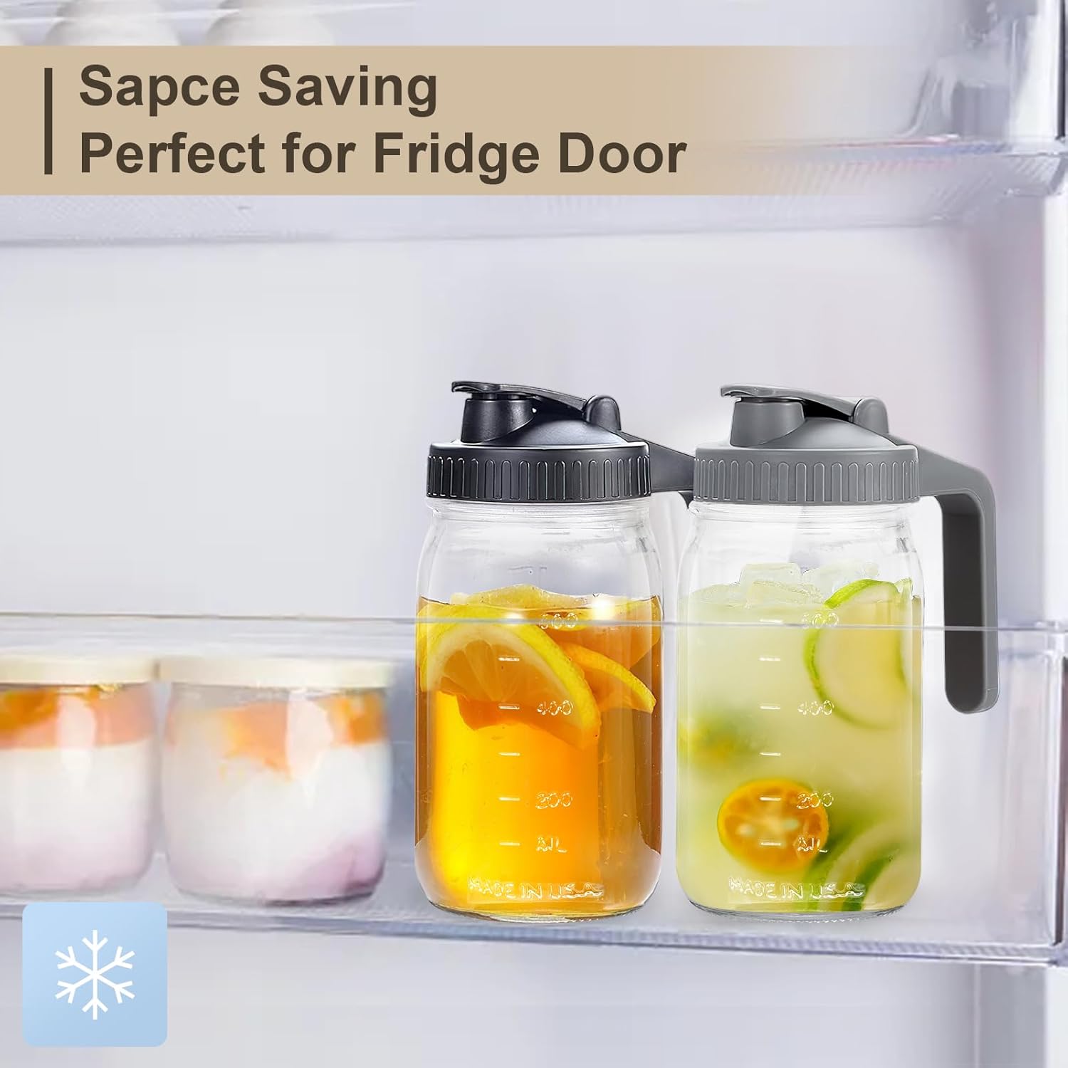 32oz Mason Jar with Lid - 2Pack No Leak Airtight Mason Jar with Pour Spout Lid Perfect for Fridge, Wide Mouth Easy to Clean, Ideal for Coffee, Breastmilk, Iced & Sun Tea, Juices
