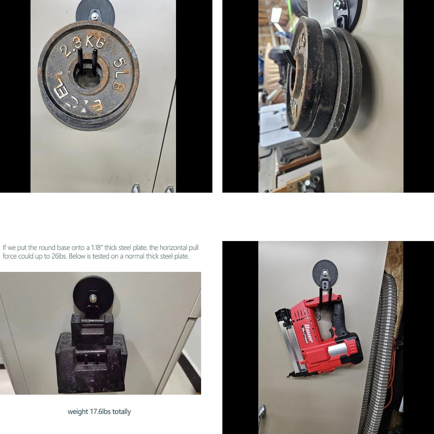 - 🧲[Convenient]: No need to drill holes everywhere! Just stick this magnetic hook on a steel surface (works best on thickness over 0.04"). Now you can hang cables, drills, and tools easily. Move the hook around freely whenever you want.