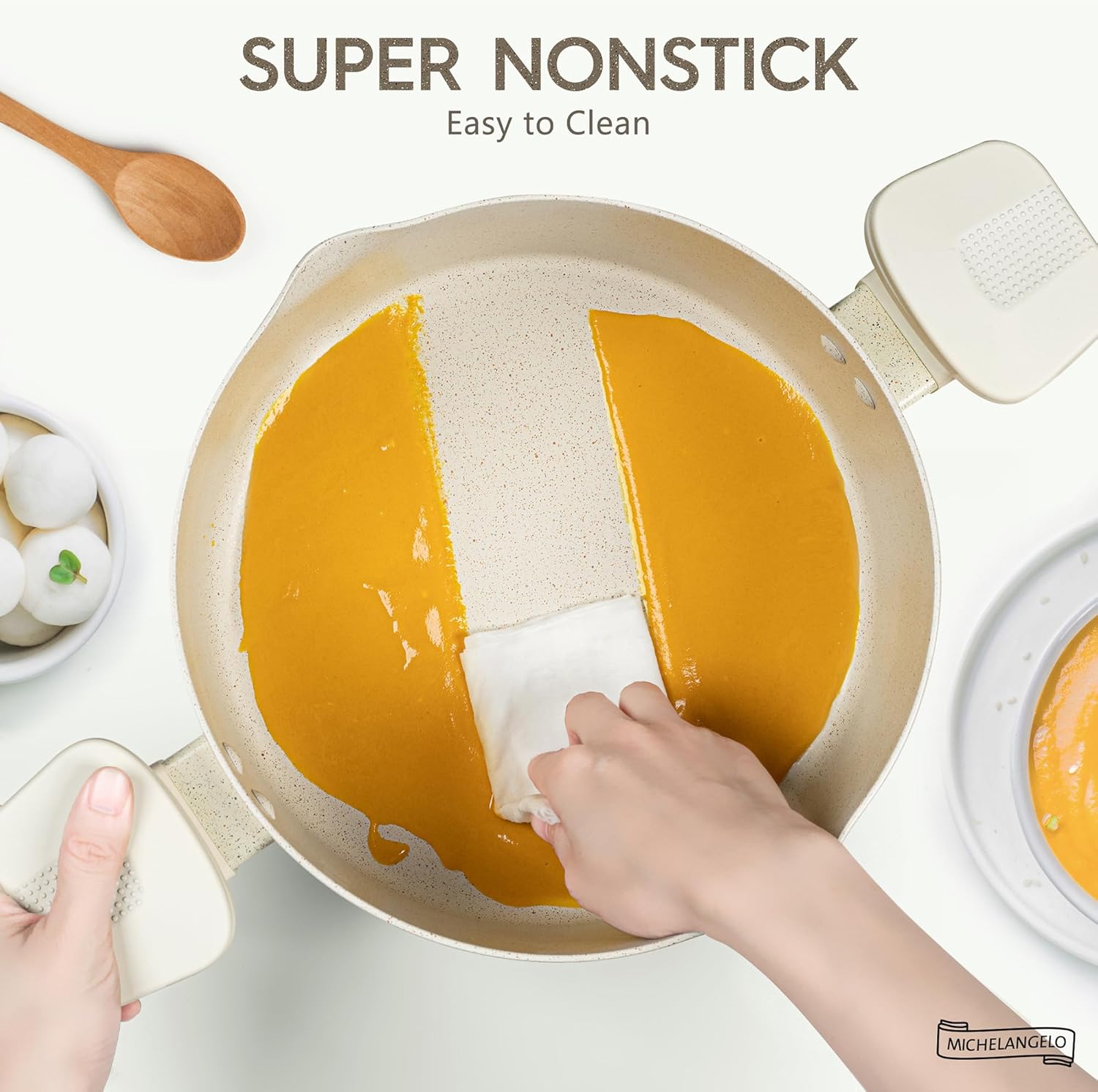 MICHELANGELO Pasta Pot with Strainer Lid - 6 Quart Multipurpose Pot with Twist and Lock Handles, Nonstick Soup Pot with Granite Coating, Induction Compatible, White