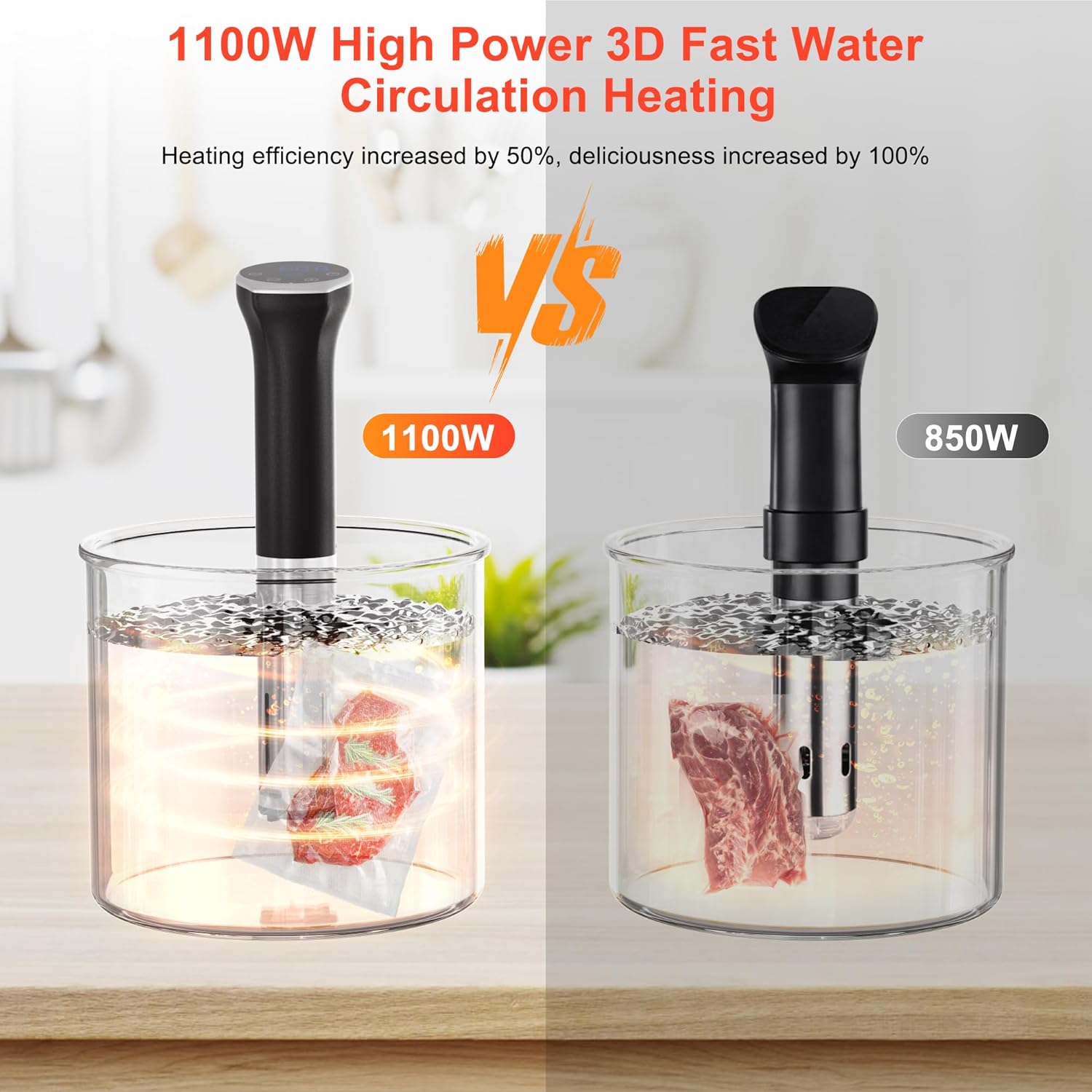 Sous Vide Machine, Sous Vide Cooker 1100W, WiFi Connect App Control with Recipe, Fast-Heating Immersion Circulator Cooker with Accurate Temperature and Time Control, Ultra Quiet, IPX7 Waterproof