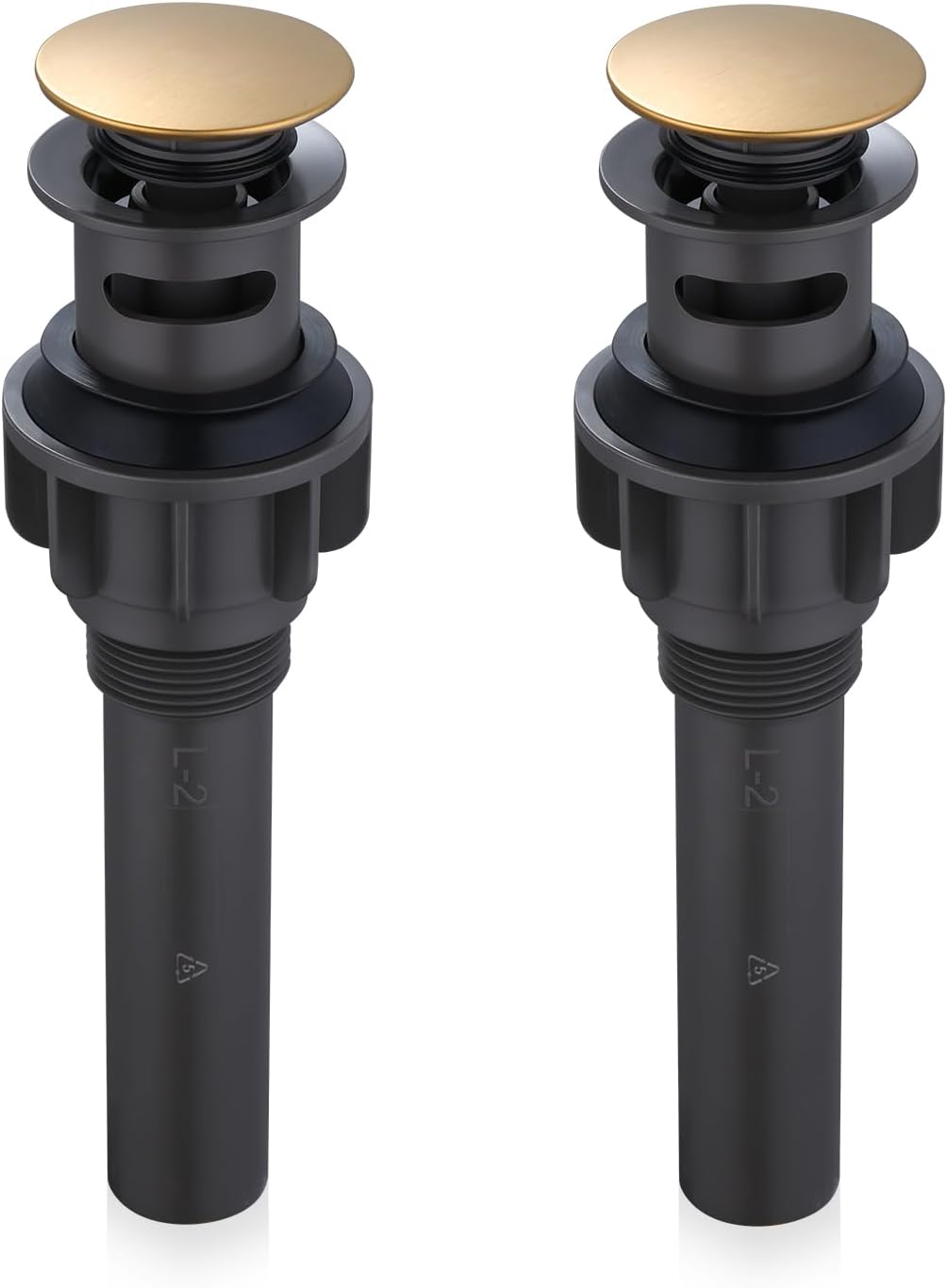 ARCORA Bathroom Sink Drain with Overflow 2 Pack, Brushed Gold Pop Up Drain Stopper Vanity Vessel Sink Clicker Drain Stopper
