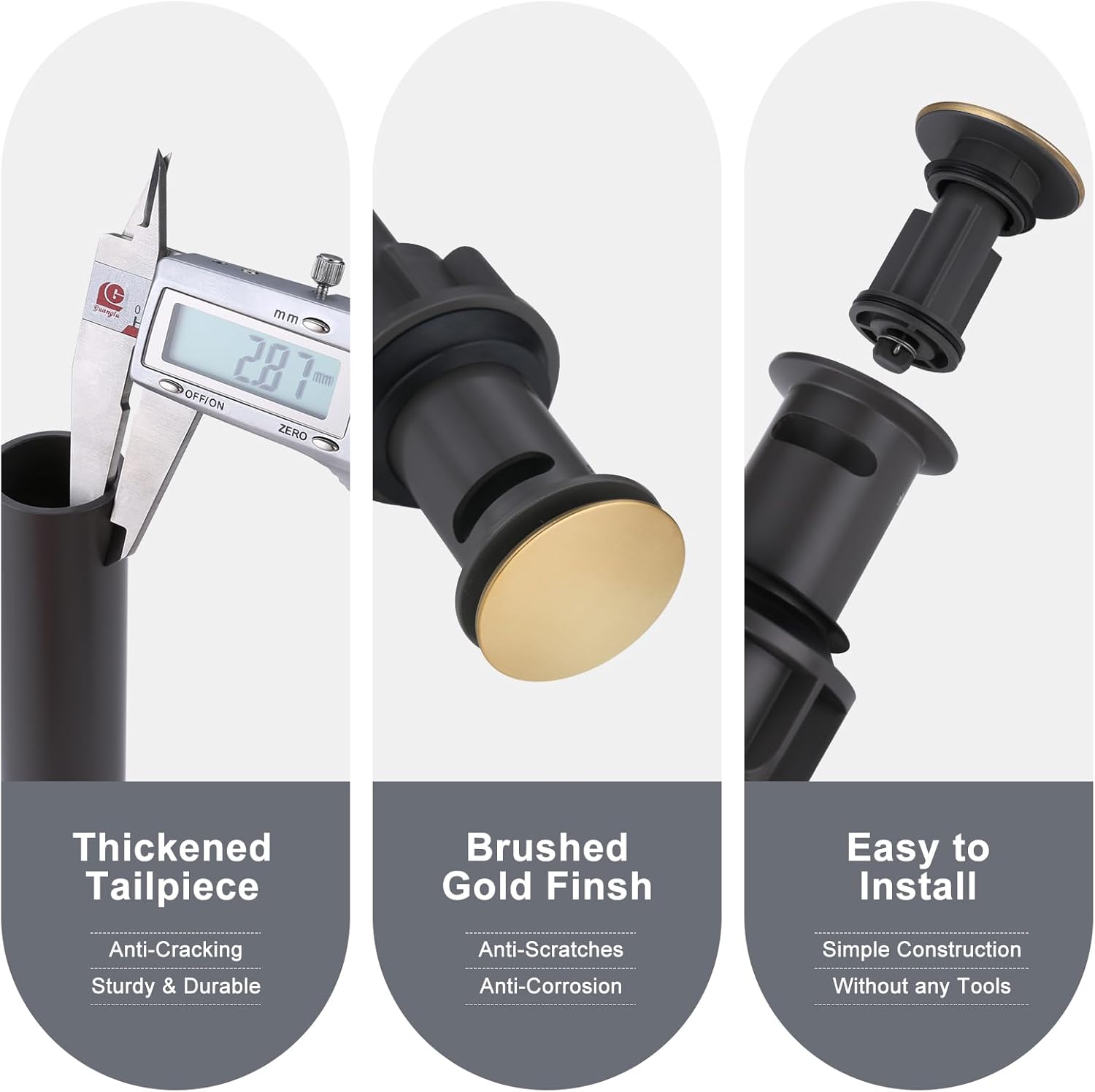 - 【Easy Installation 】This gold sink drain for bathroom sink comes with 2 silicone gaskets. Ensure the gaskets are in the right position to avoid leakage. No tools required.