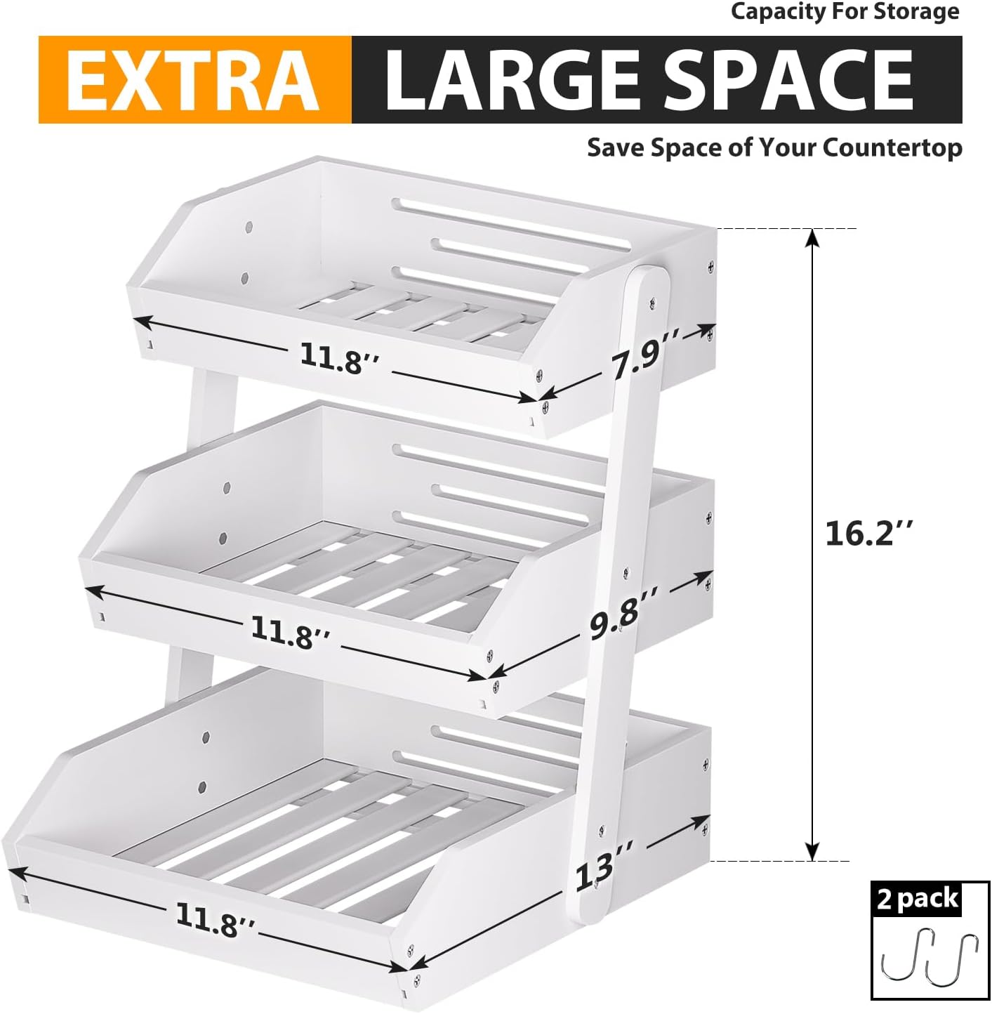 - LARGE CAPACITY: Gmtsl fruit basket for kitchen counter used as large wooden fruit bowl with 2 banana hooks, you can put fresh fruit,Bread,Snack in each tier. Different sizes(2 or 3 tiers) meets different vegetable storage needs (each basket can be used separately)