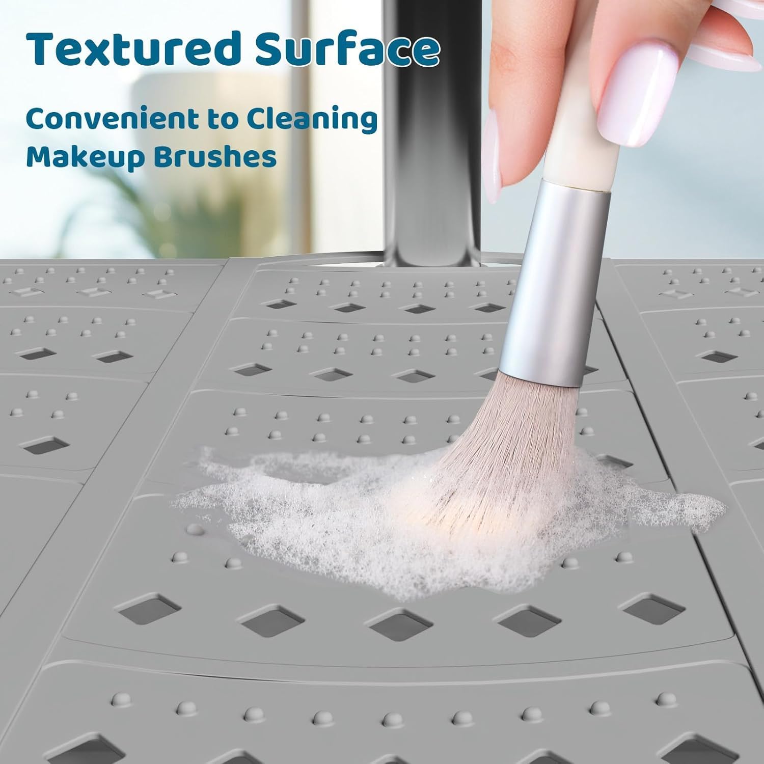 - High Quality: Crafted from high-quality silicone, this sink cover heat resistant up to 450 degrees Fahrenheit, safely place hot styling tools such as curling irons, hairdryers, or straighteners on its surface. And it with raised particle on the surface, convenient for you to clean your makeup brush.