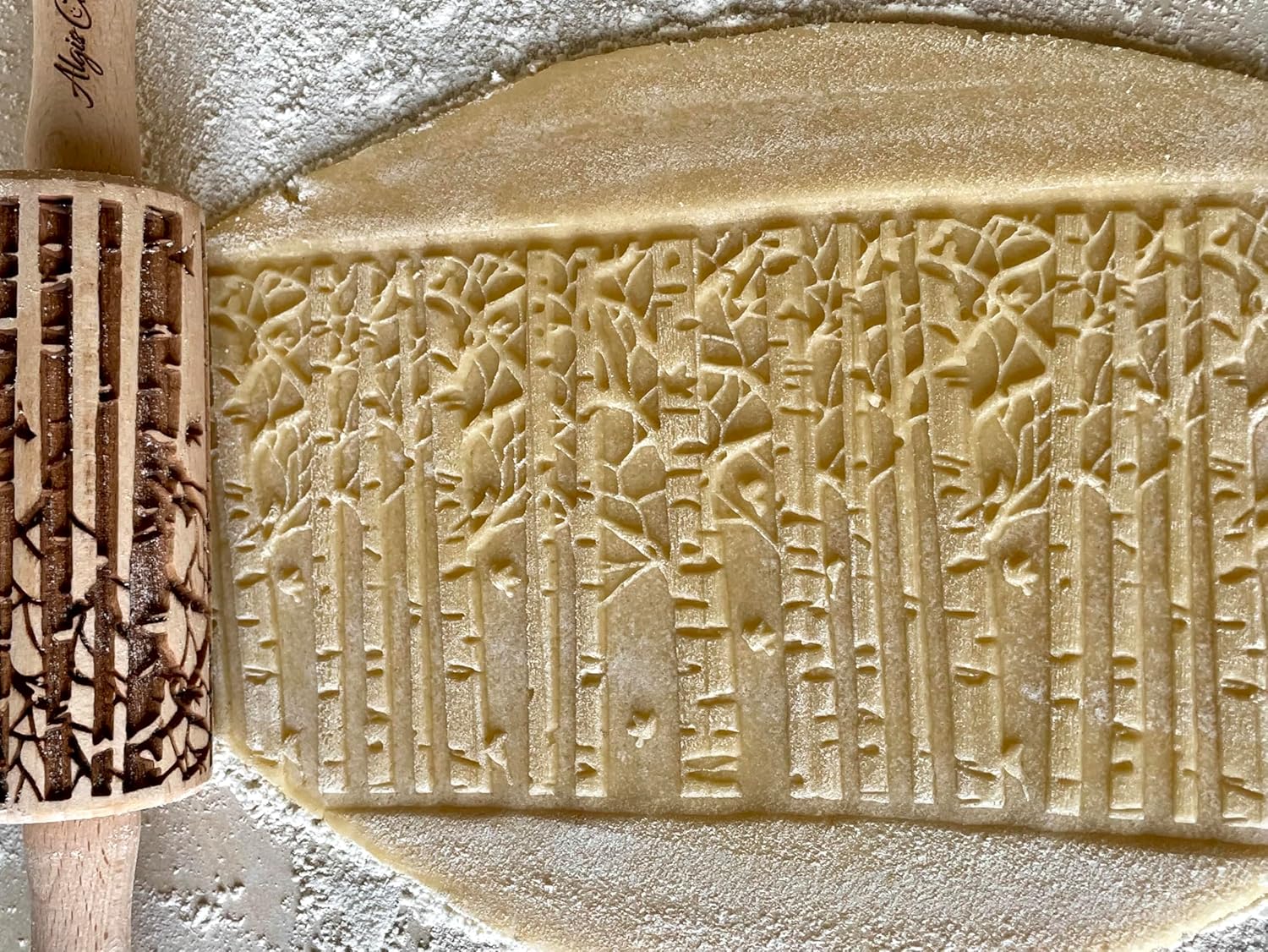- COMFORTABLE DESIGN - This rolling pin with pattern is made with ergonomics in mind so that anyone can use its mesmerising designs! Rolling pin measures are approximately 9.5" (24 cm) from handle to handle, embossing part 4,5 inches (11 cm), diameter 2" (5 cm), made of beech wood. The finished product is food safe.