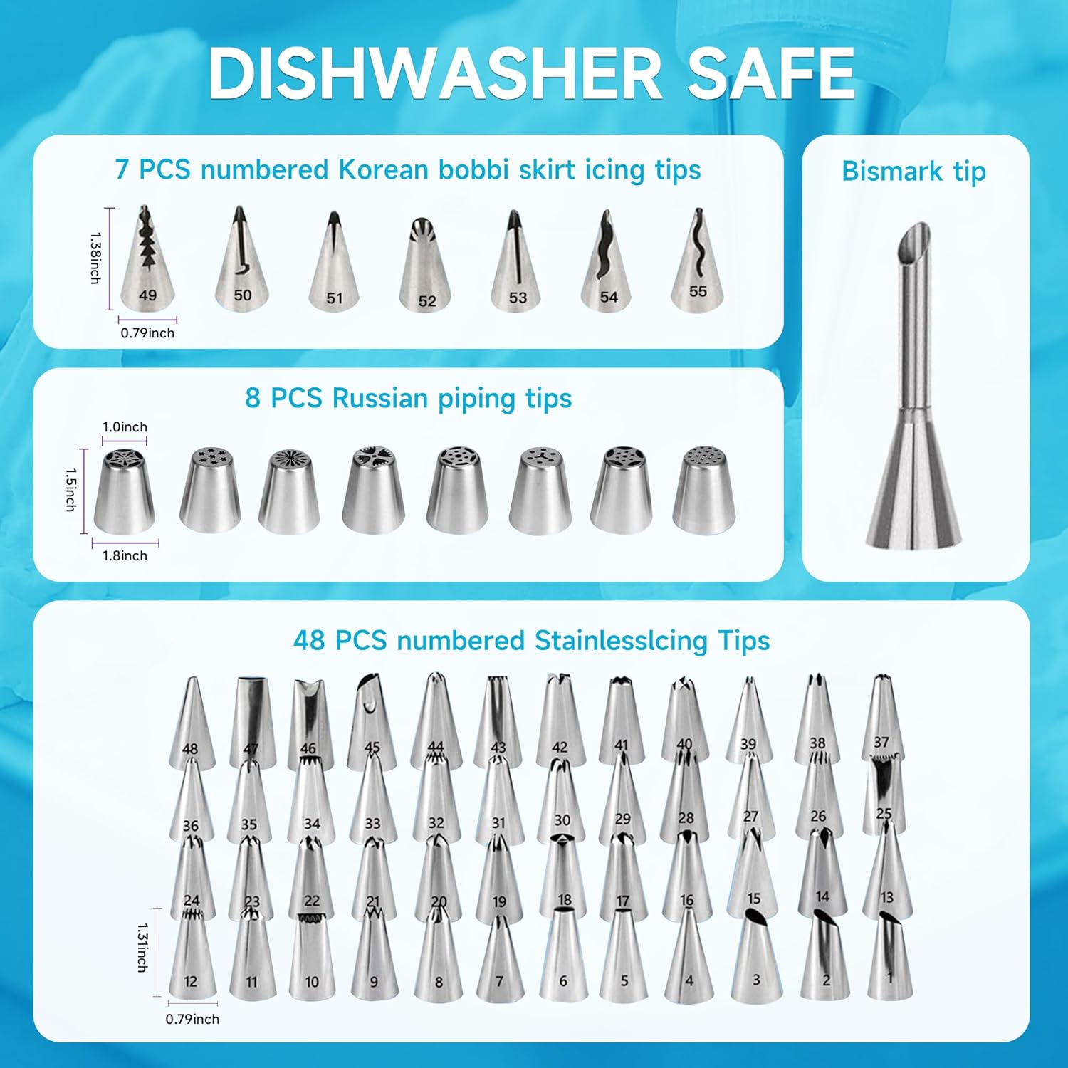 - PATTERN CHART AND E-BOOK :This cake decorating is FUN FOR ALL AGES AND SKILL LEVELS,This set having numbered piping tips with Pattern chart. So you don't have to worry about which tips produce what kind of decoration, just have a look on pattern chart where we have provided outcome of each tip to make tip selection,E-Book user guide includes The Cake Decorating supplies four levels,Each step Method of Cake Baking, Leveling & icing cakes, 3 frosting recipes, Step by step guide for using icing