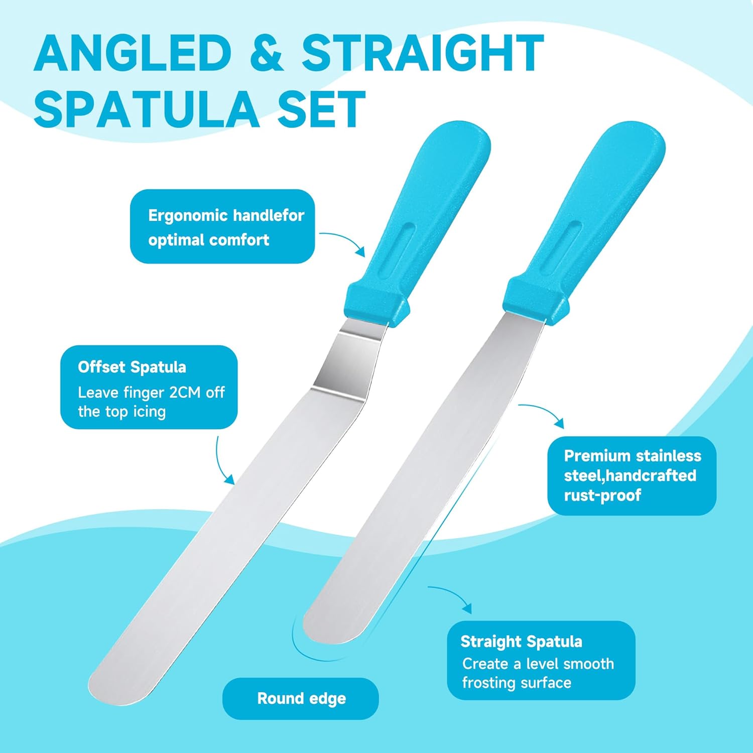 Cake Decorating Kit,137pcs Cake Decorating Supplies with Cake Turntable for Decorating,Pastry Piping Bag,Russian Piping Tips Baking Tools, Cake Baking Supplies for Beginners(Blue)