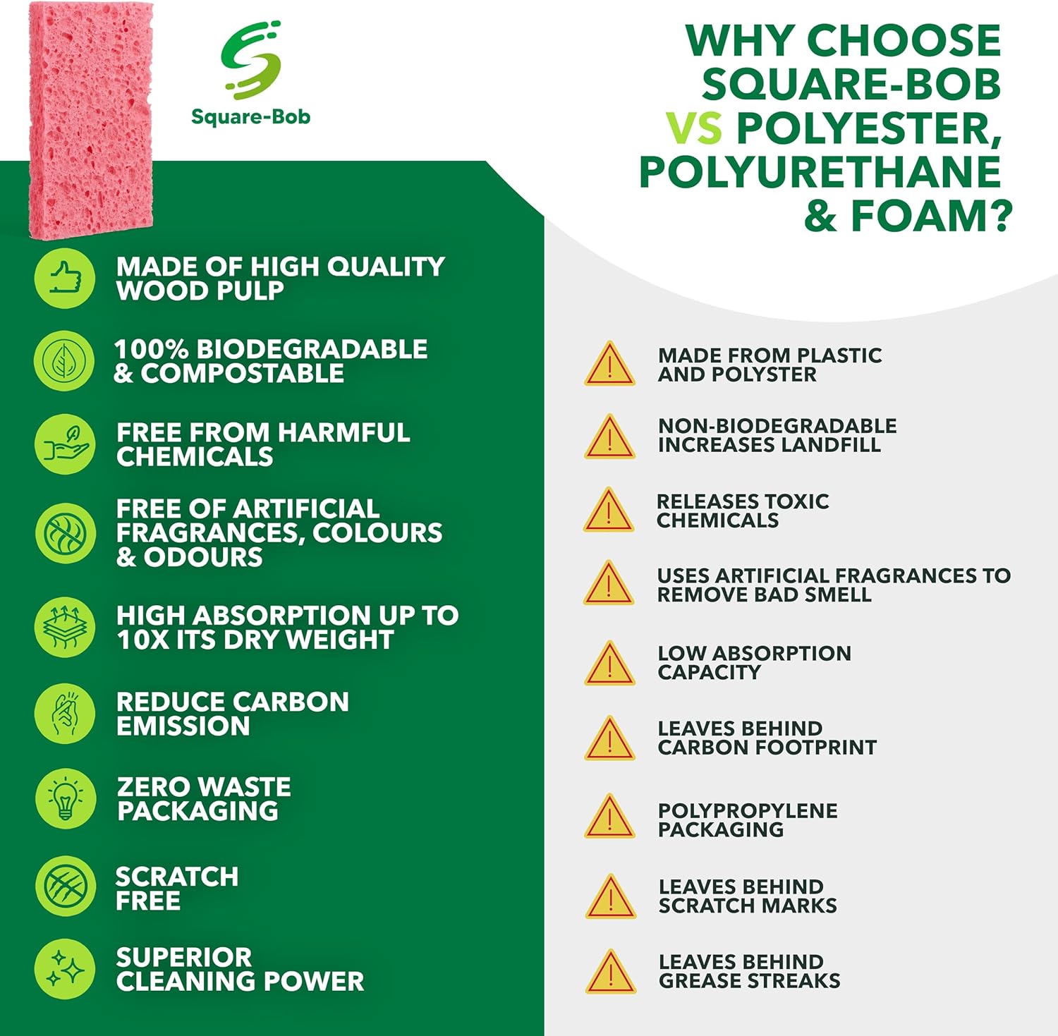- Easy to Clean & Sanitize: No need to struggle with bleach and detergents, run them through a dishwasher to keep these household cleaning sponges clean and odor free; being plant-based, they do not have any harmful effect on your health or the planet