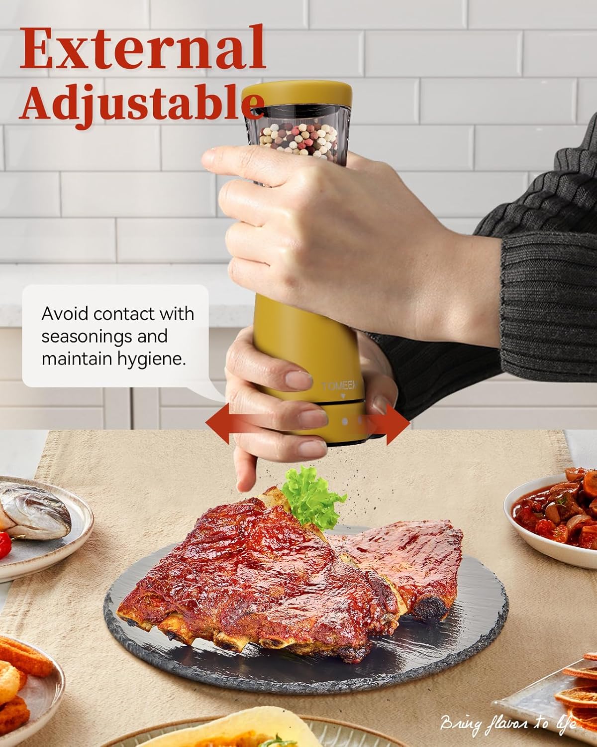 - Bonus Storage Base: This electric salt and pepper grinder set comes accompanied by a practical storage base that not only catches excess spice to keep your table clean but also serves as a stylish display stand, accentuating the elegance of the salt and pepper mill sets when not in use, and making it a functional yet decorative addition to your kitchen arsenal