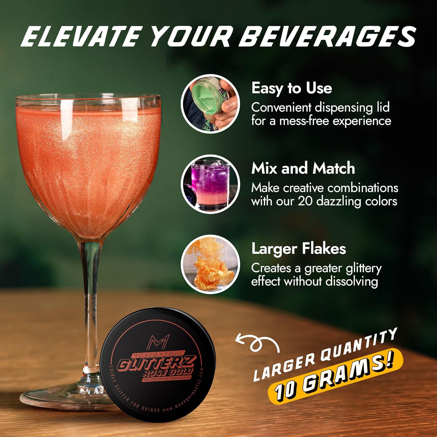 MONÉGASQUE Rose Gold Edible Glitter for Drinks 10g – Rose Gold Edible Glitter for Cakes – Halloween Chocolate, Cupcake, Strawberries, & Cake Decorations Sparkles – Cocktails & Drink Shimmer Powder