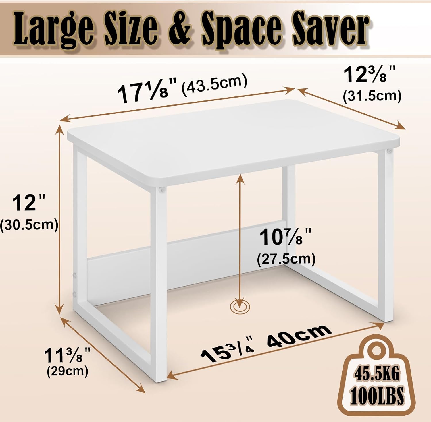 MARTY Kitchen Countertop Organizer Cabinet Shelf, 17x12.4 Large Spice Racks Counter Shelf Microwave Oven Rack Desktop Storage Organization for Kitchen, Office, Metal & Wood, White