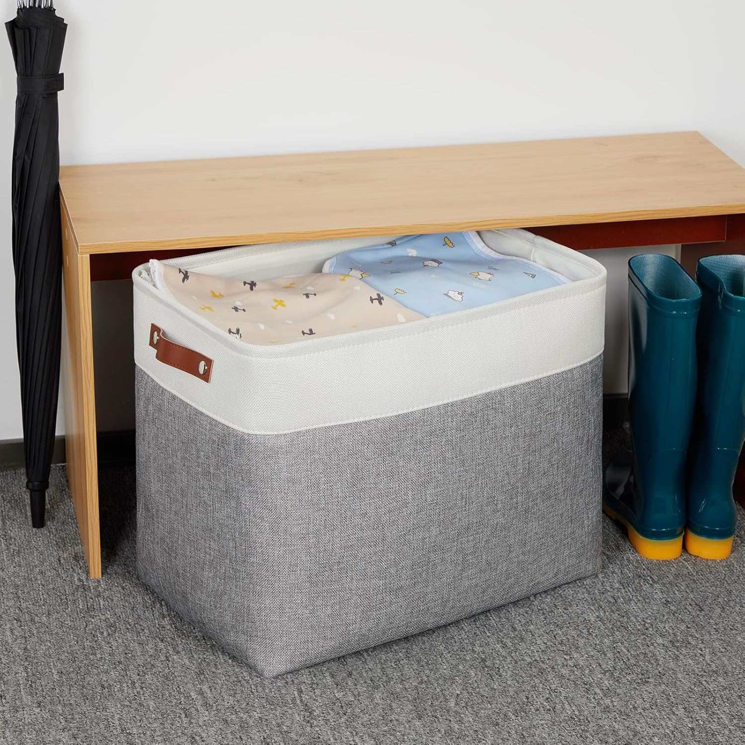 - 【Unique Design & Modern & Decorative】Set of 2 large storage baskets, dimensions(each): 17(L) x 12(W) x 15(H) inches. Collapsible storage baskets bring you organizing convenience and a sweet home. Great for socks, underwear, books, magazines, toys, baby clothes, pet products, wipes, towels, decorations, office supplies, DVDs, and gifts. The fabric baskets with neutral colors can match a lot of home styles - keeping your home nice and tidy.