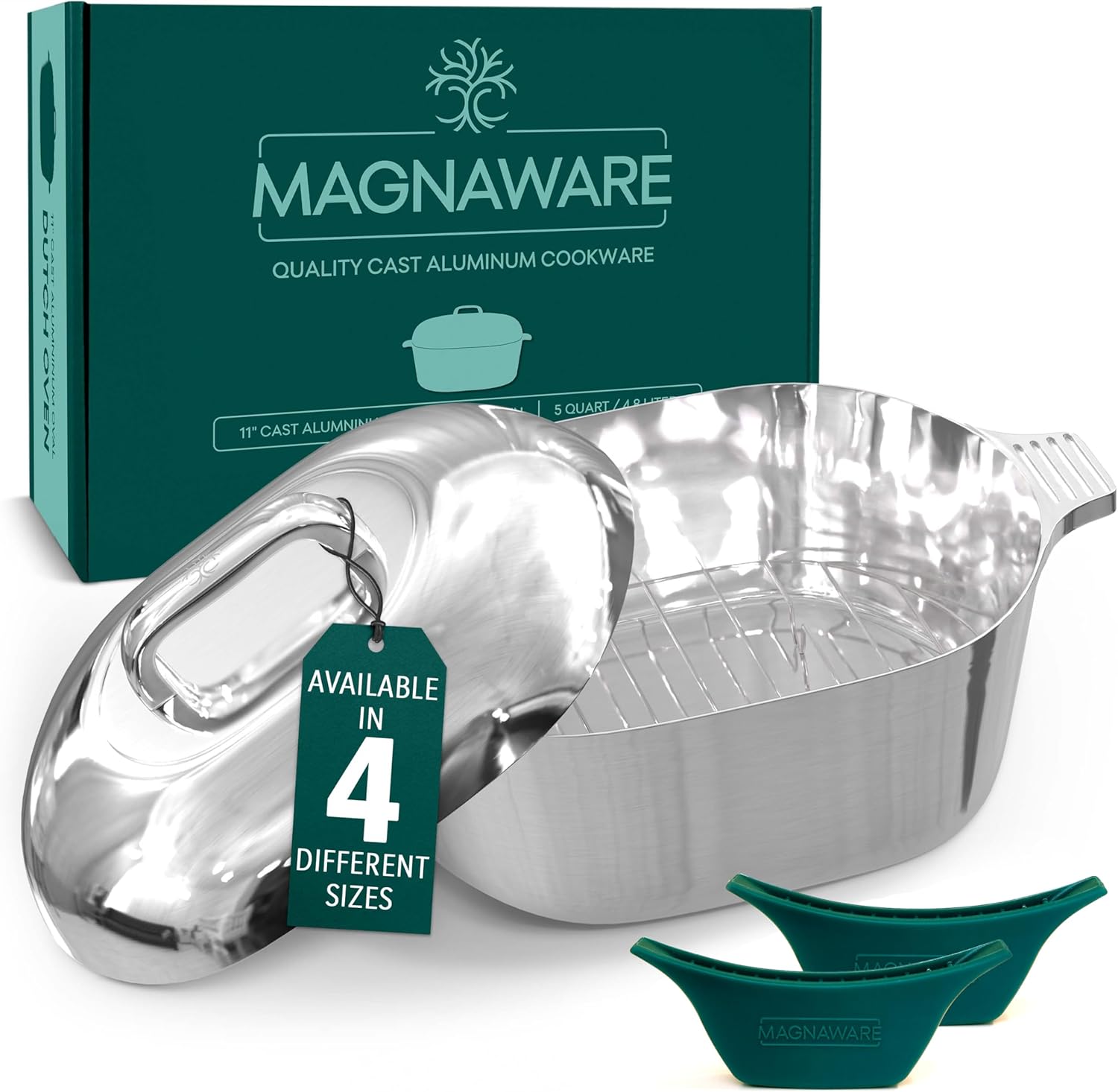 - BUILT TO LAST GENERATIONS: Constructed for durability, this heavy-duty cast aluminum pot is oven safe up to 450°F. MAGNAWARE dutch ovens feature a classic polished aluminum finish that complements any kitchen aesthetic. For best results, simply use a small amount of oil, and to preserve the surface, we recommend silicone, wood, or nylon utensils over metal ones.