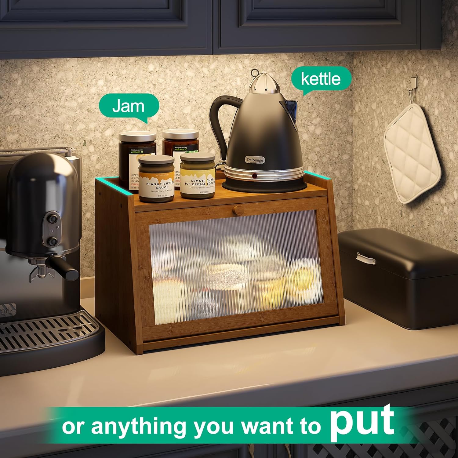 - [Flat Top Design] Super load-bearing capacity, any kitchen items you want can be placed on the bread box.