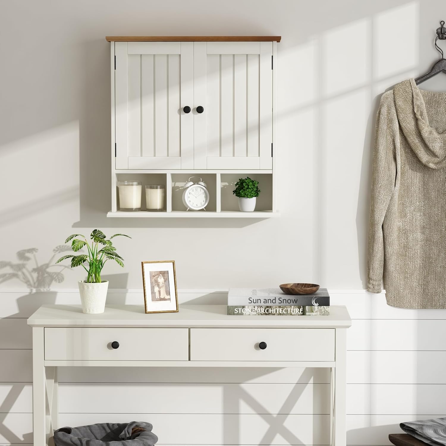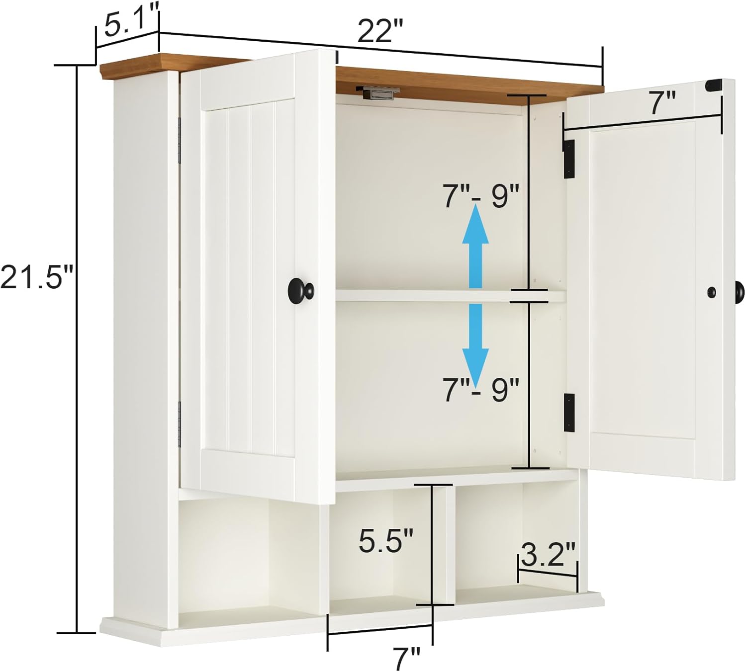 ChooChoo Bathroom Cabinet Wall Mounted 2-Door with 3 Open Shelves, Wooden Medicine Cabinets with Adjustable Shelf,Space Saver Storage Cabinets Over The Toilet for Bathroom&Living Room,White Brown