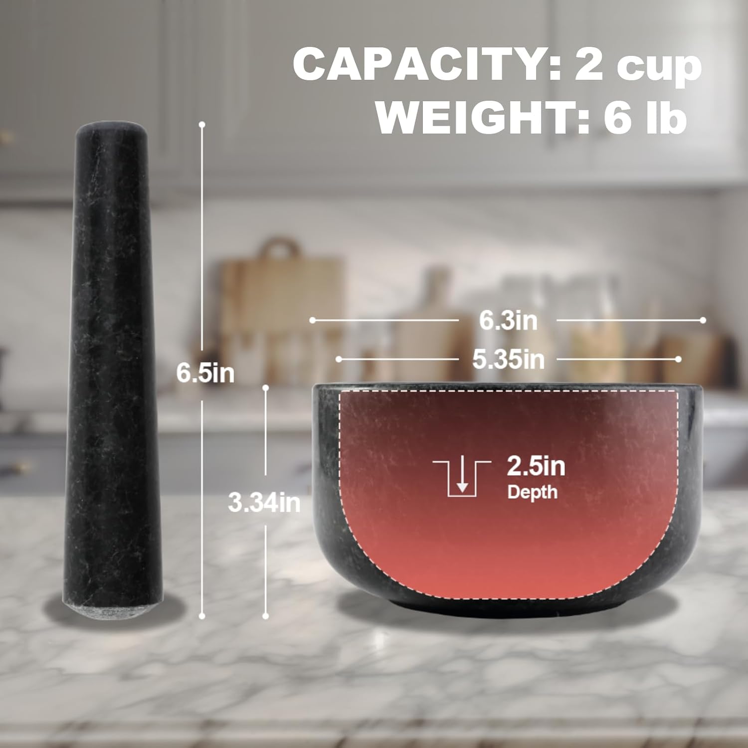 Koville Granite Mortar and Pestle Set, 6.3"-2 Cups Stone Grinder Bowl for Guacamole, Salsa, Pill Crusher, Spice, Herb, Garlic, Nut, Heavy Duty Grinder for Kitchen