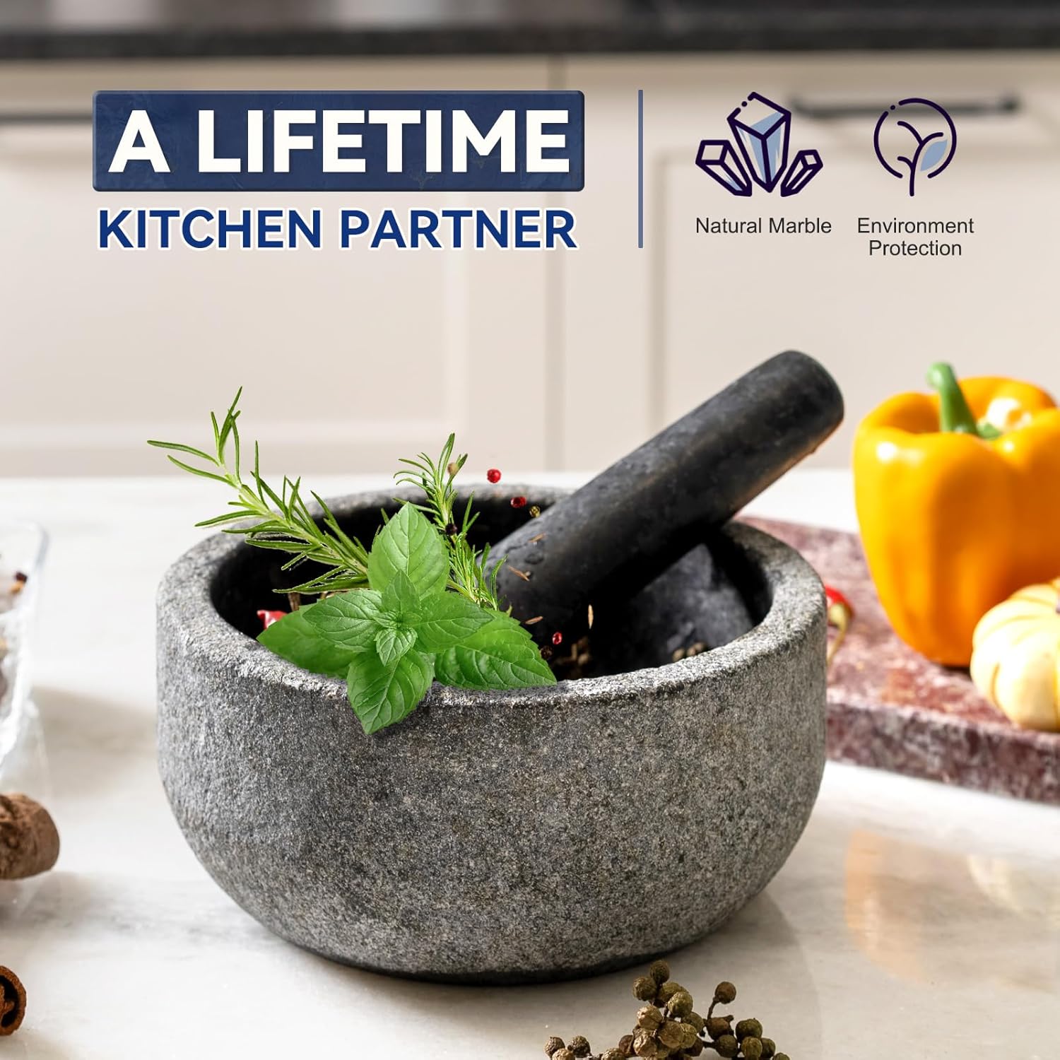 - Healthy and Safety: The marble mortar and pestle set is super safe in contact with food. Natural stone has superior safety properties that will not spoil the flavor of food or leave food residue, The external is well-polished, super easy to clean