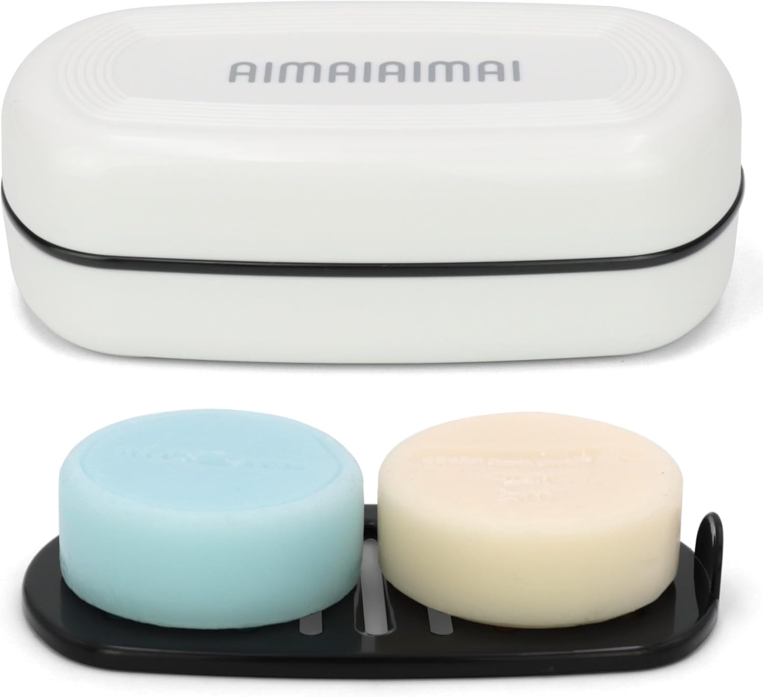 Shampoo Bar Holder Travel Case for Two Bars – Compatible with Kitsch Solid Shampoo & Conditioner Bars, Large Soap Container for Bathroom or Travel (1 Pack, White Style A-Large)