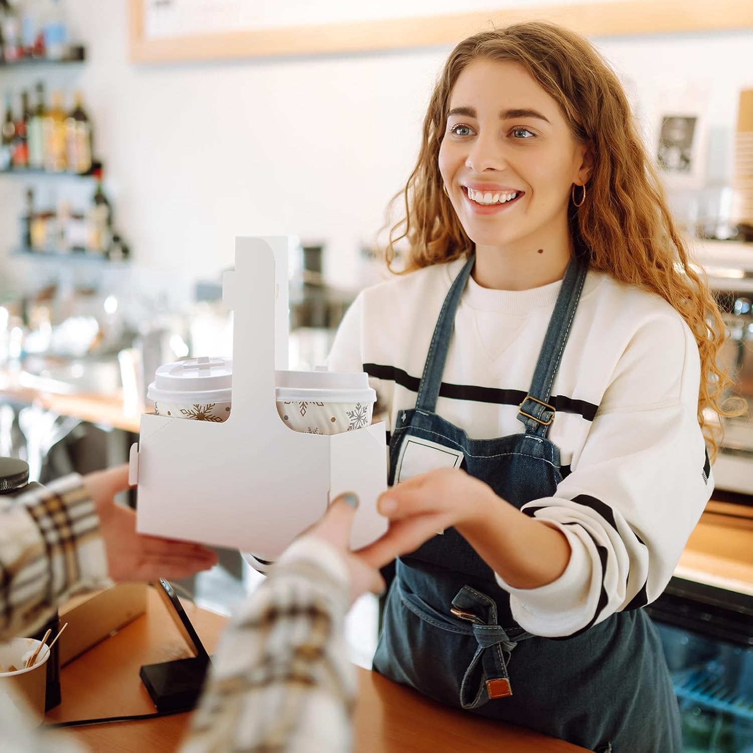 - Durable Construction: crafted from quality cardboard material, these white drink holders ensure safety, reliability, and durability; They are capable of firmly holding 12-20 ounce beverages, making them ideal for commercial takeout applications, restaurants, coffee shops