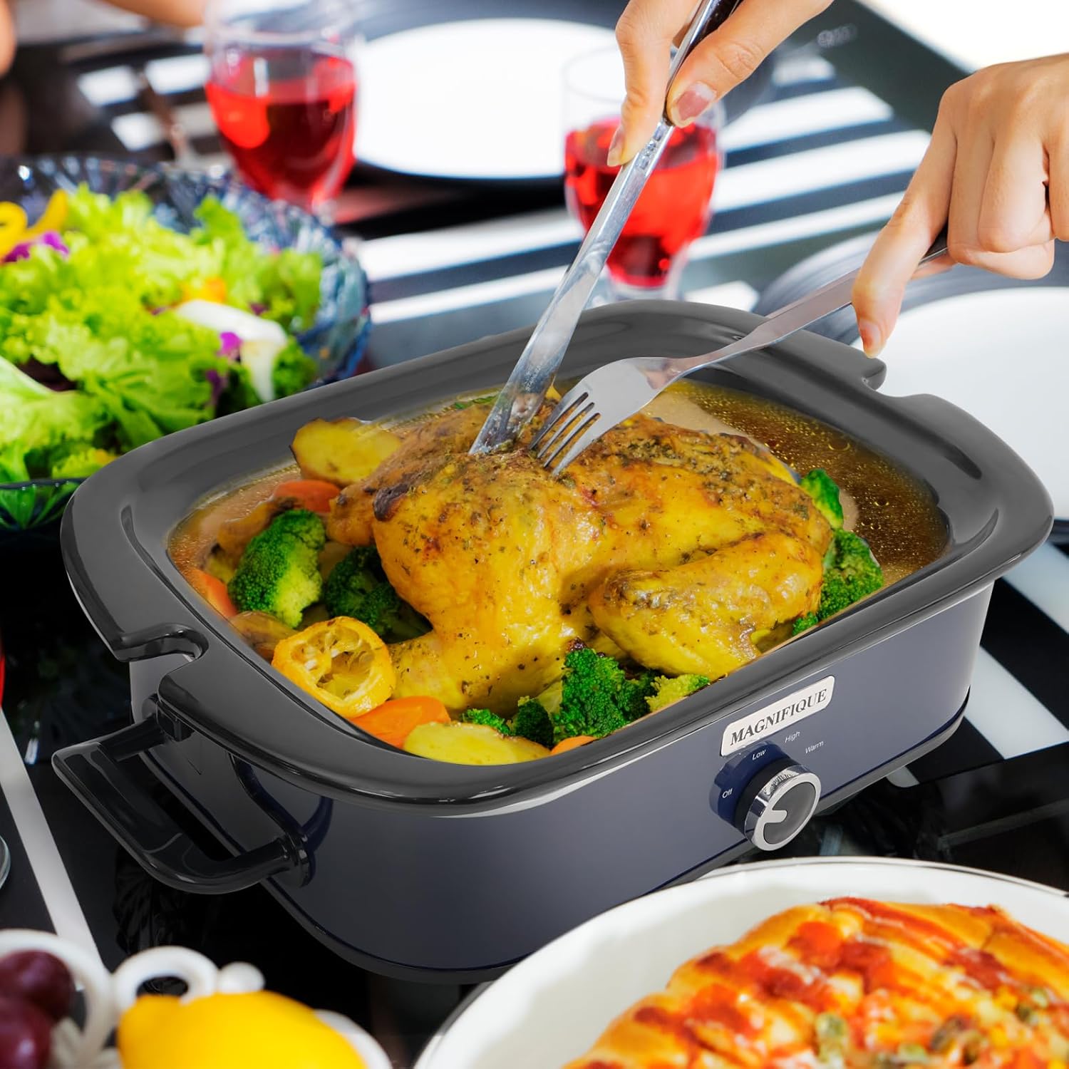 Magnifique 4-Quart Slow Cooker with Casserole Manual Warm Setting - Perfect Kitchen Small Appliance for Family Dinners, Dishwasher Safe Crock, Blue