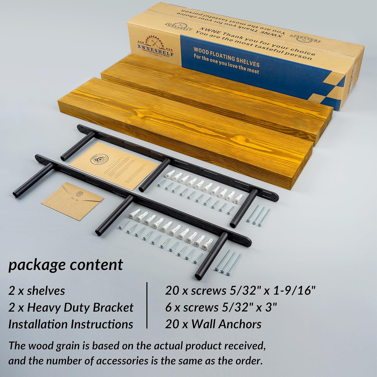 - Solid Wood Floating Shelves: The wood Floating Shelf is made from 100% solid pine, selected for its beautiful wood grain texture and knotted into points, with a sanded, hand-stained finish that gives the space a rustic, natural, warm feel. Note: All steps are done by hand and each ledge is slightly different, but equally stunning!