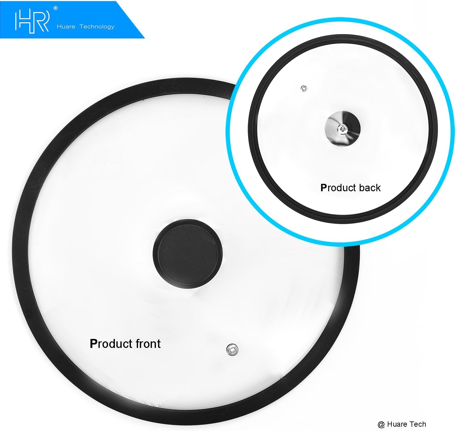 Silicon Glass Lid for Pot,Pan,Skillet Fits 12"(30CM) Cookware Silicon lid Dishwasher Safe, Replacement Lid Vented Tempered Glass with Heat Resistant Silicone Rim By HR Huare Technology, Black,1 Pack