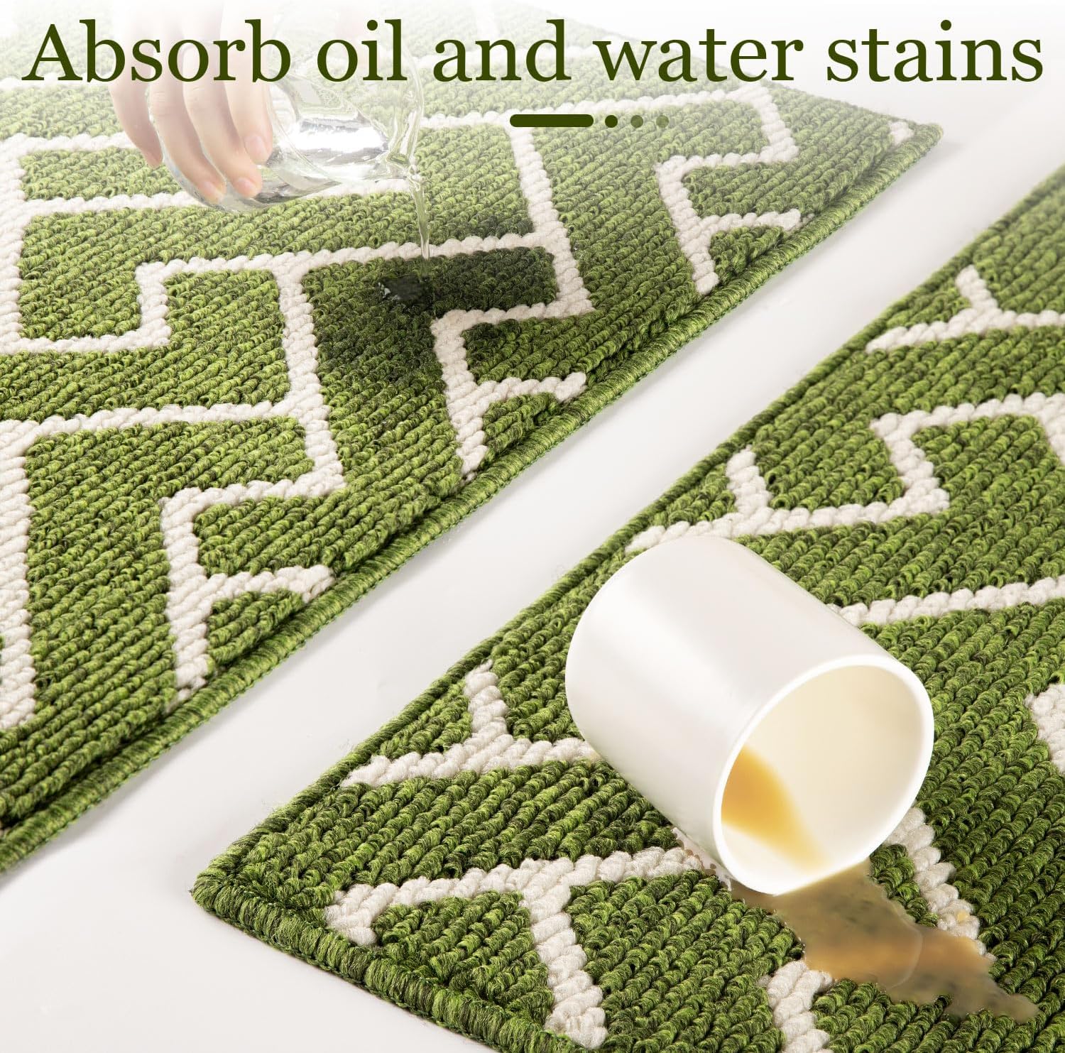 hicorfe Kitchen Rugs and Mats Sets,2 Pieces Super Absorbent Polypropylene Non-Slip Rug,Soft Comfort Floor Mat,Washable for Kitchen,Hallway,Office,Sink,Laundry(24" x 35" Plus 24" x 79",Sage Green