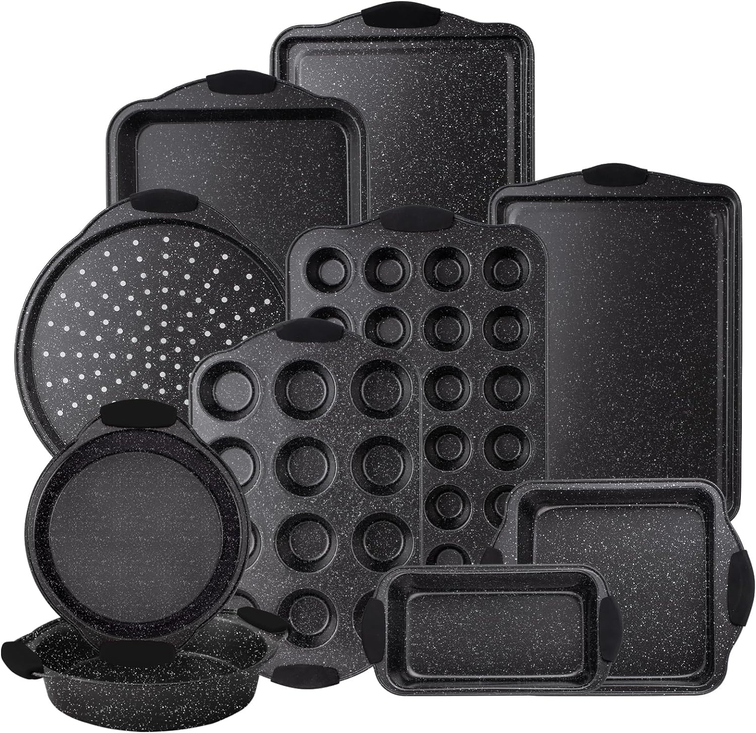 Country Kitchen Nonstick Stackable Bakeware Set - Durable, Easy Release Baking Set, Black, 10 Pcs