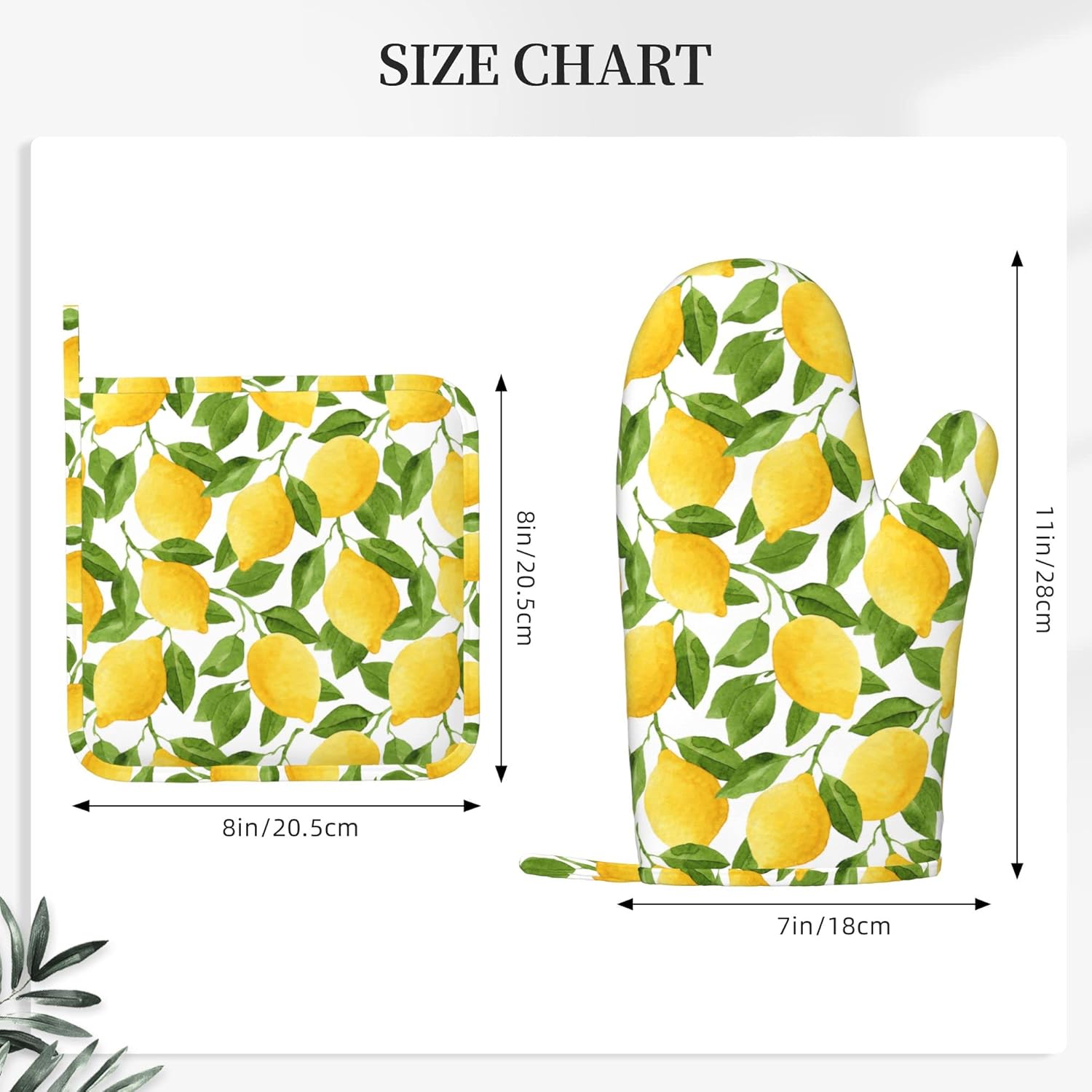 Lemon Oven Mitts and Pot Holders Sets of 4,Resistant Hot Pads with Silicone Non-Slip BBQ Gloves for Kitchen,Cooking,Baking,Grilling