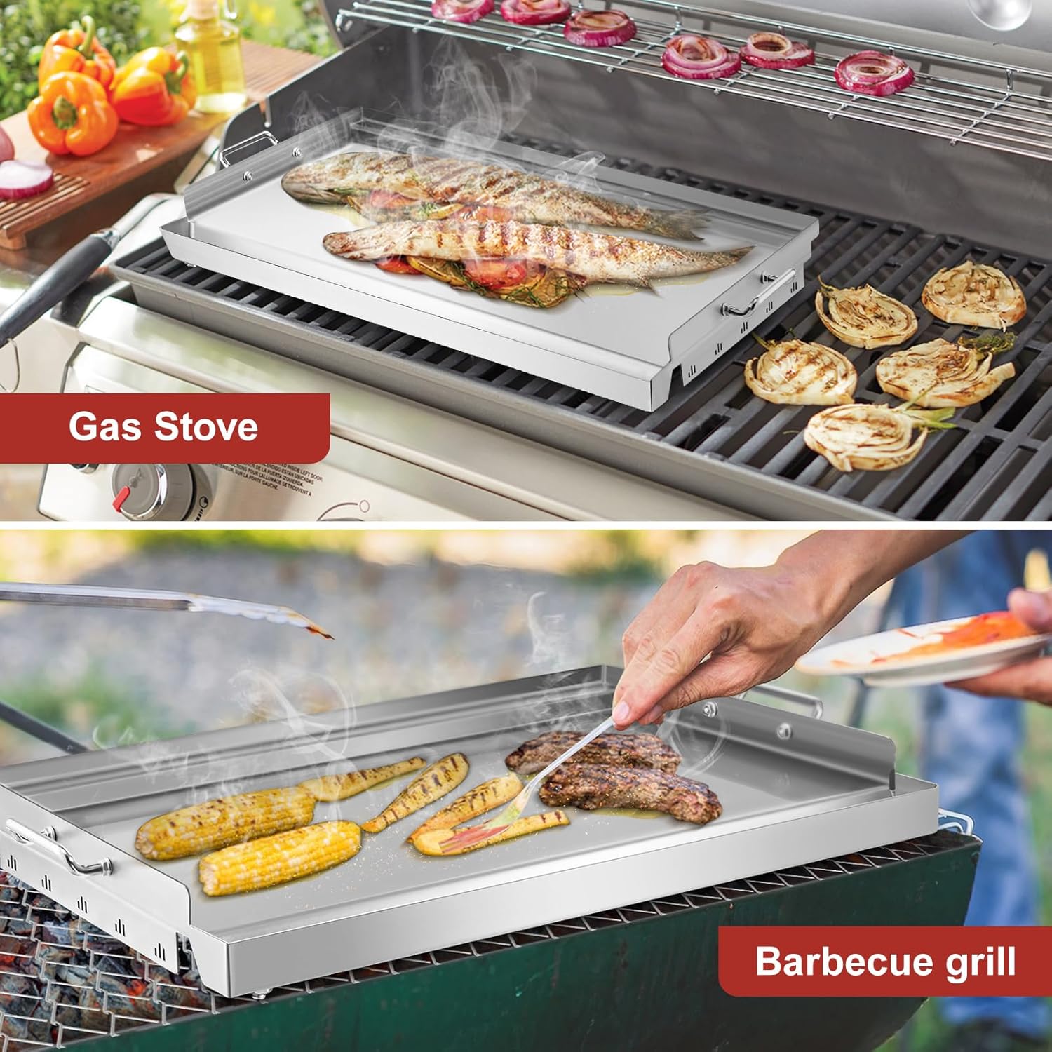 - LARGE COOKING AREA: The Griddle Plate measures 23" x 16 " large surface, providing ample space. The YORKING stainless steel griddle is highly suitable for use on electric skillets, gas stoves, and charcoal grills,and ideal for cooking pancakes, bacon, eggs, vegetables, and practically any type of food