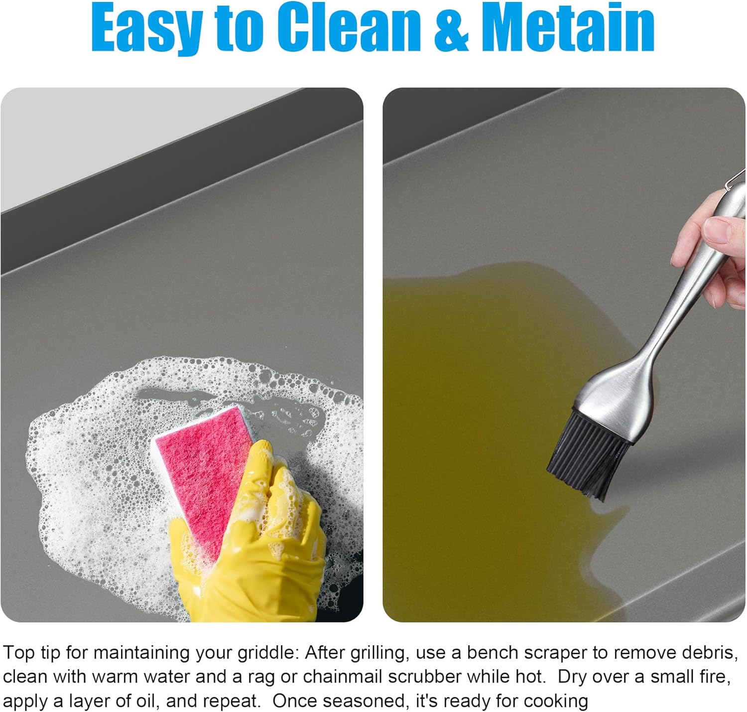 - High Quality Material:Crafted from high-quality heavy-duty steel, the griddle boasts excellent heat-conducting properties, ensuring even heat distribution. This prevents food from being overcooked in some areas and undercooked in others. The steel is highly resistant to high temperatures and deformation, guaranteeing long-lasting durability. The accompanying carry bag, made of weather-resistant fabric, is waterproof and dustproof, effectively protecting the griddle and extending its lifespan