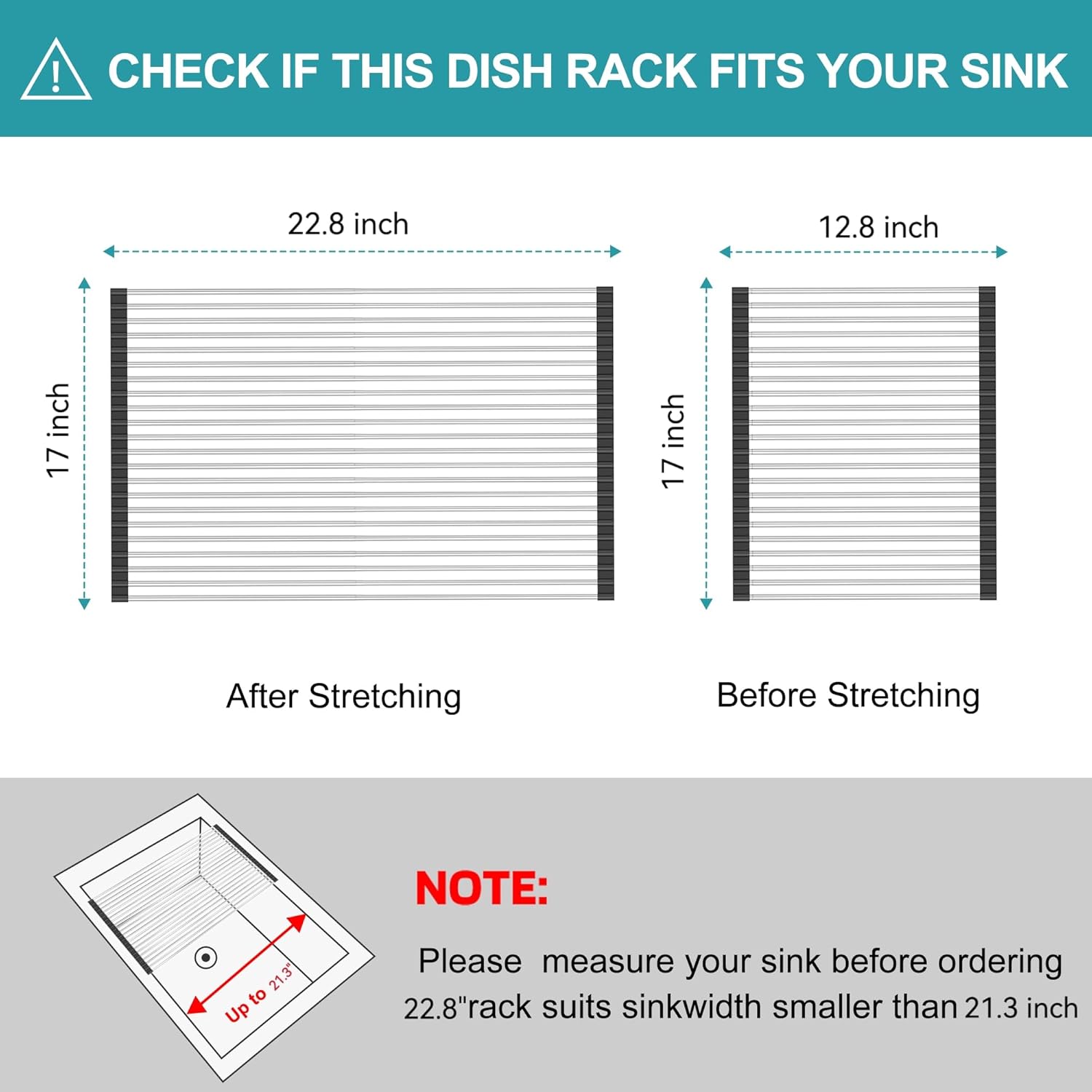 - 【PERFECT DESIGN】🎁 Giftable Package - Ready to go for gifting to your love ones 💝The length of the sink dish drying rack can be adjusted according to your needs,dish drying rack size is adjustable 17"/43cm(length) x12.8"/32.5cm(width) -17"/43cm(length) x22.8"/57.9cm(width). The sink-type dish drying rack is suitable fo most sizes of sinks,and it is better to confirm the size of the sink before purchasing. it sinks with the shorter side does NOT exceed 21.3''/54cm. [NOTE - If your sink is wider than 21.3" /54cm please order a larger model].
