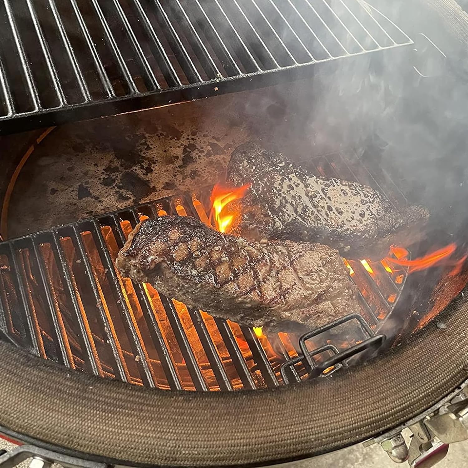 - 【Half-Moon Design】The half-moon design of these grills facilitates easy removal of charcoal from the bottom of the grill for convenient and efficient grilling. The cast iron material creates restaurant-grade grill marks that seal in the flavor of your food.