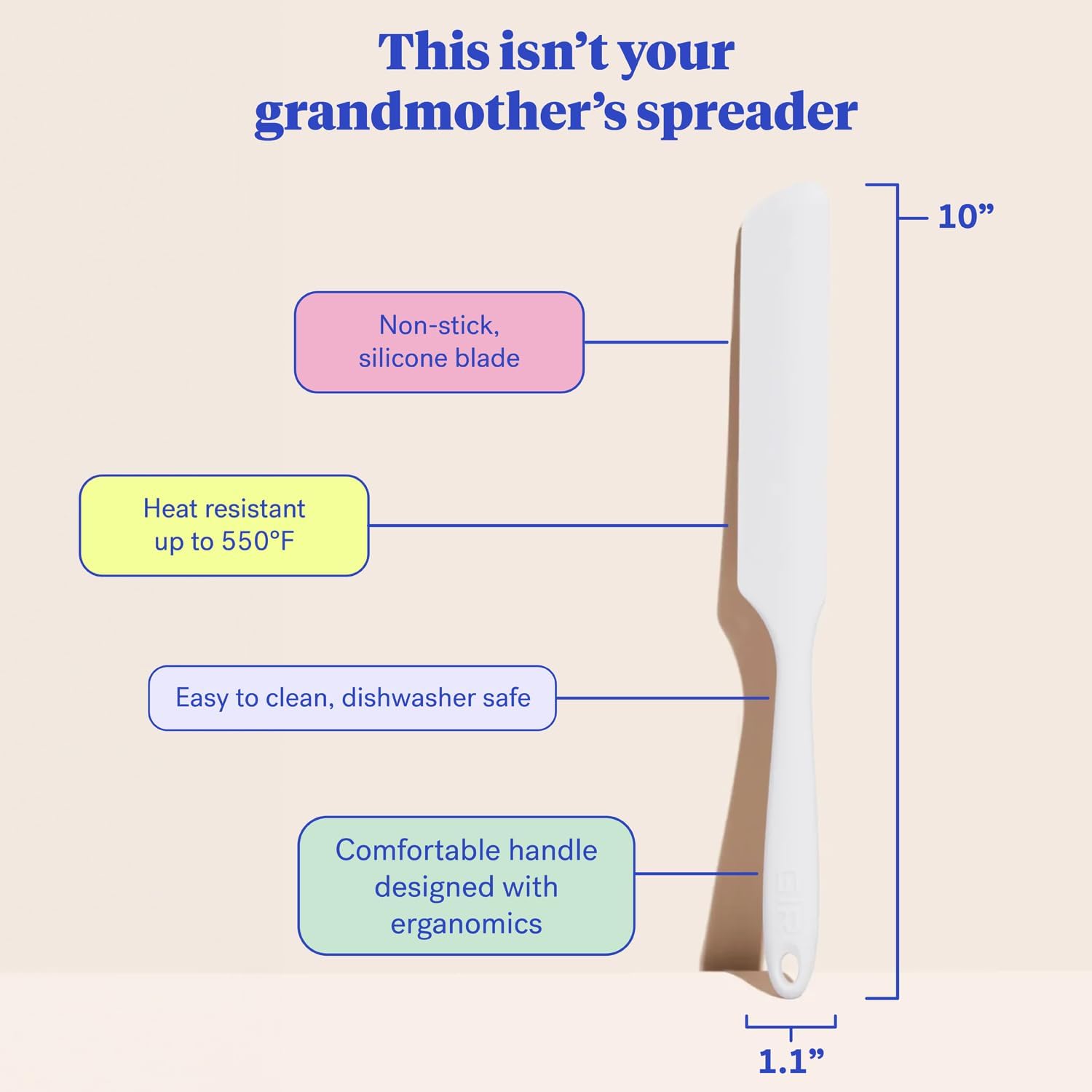GIR: Get It Right Silicone Spreader - Silicone Butter Spreader - Food Grade Scraper - BPA & BPS Free - Baking Supplies - Home & Kitchen Gadgets - 10" x 1.10" - Studio White