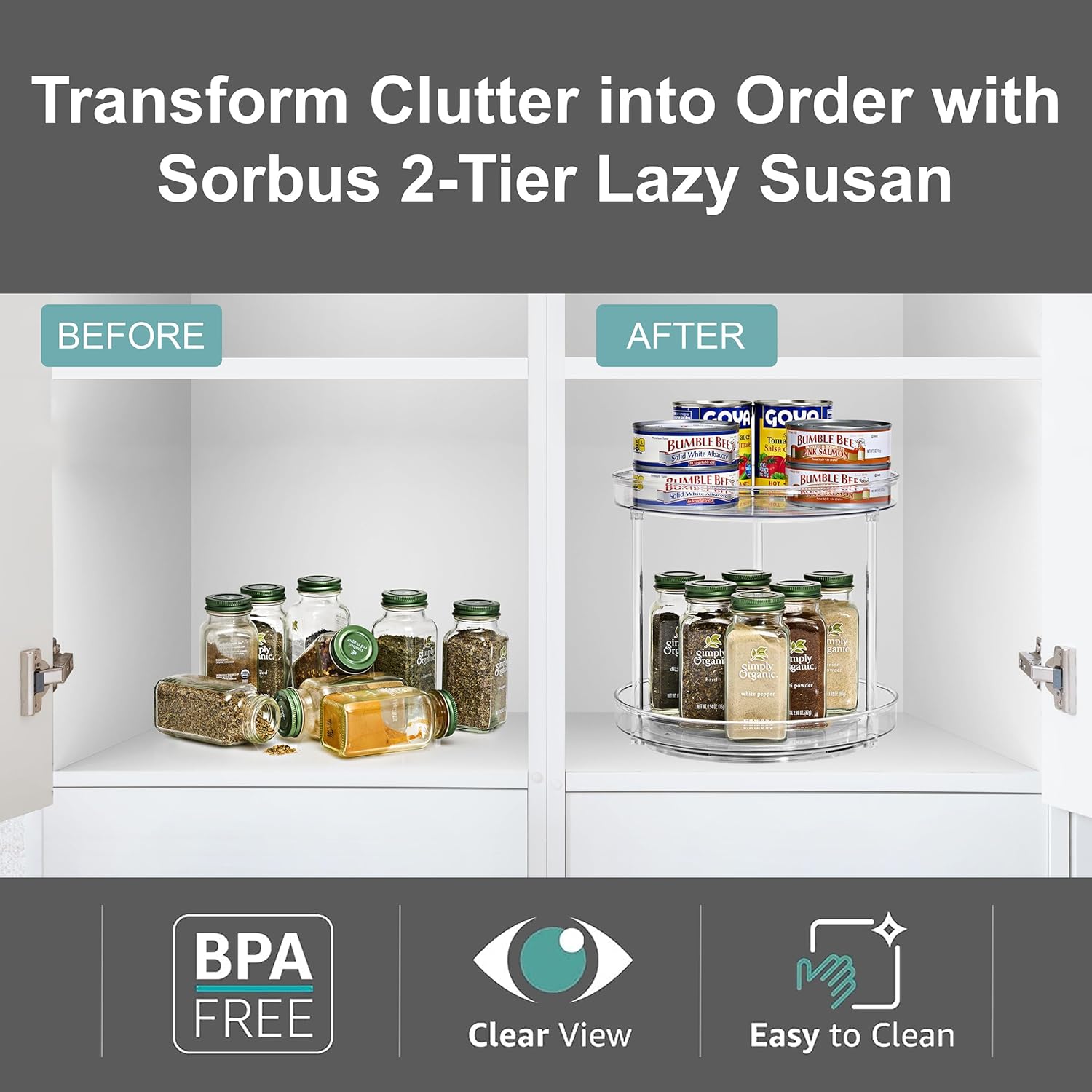 - High-Quality Lazy Susan: Our Sorbus Clear Lazy Susan Organizer is made from premium quality plastic for durability, ensuring it lasts longer than other lazy susan organizers on the market