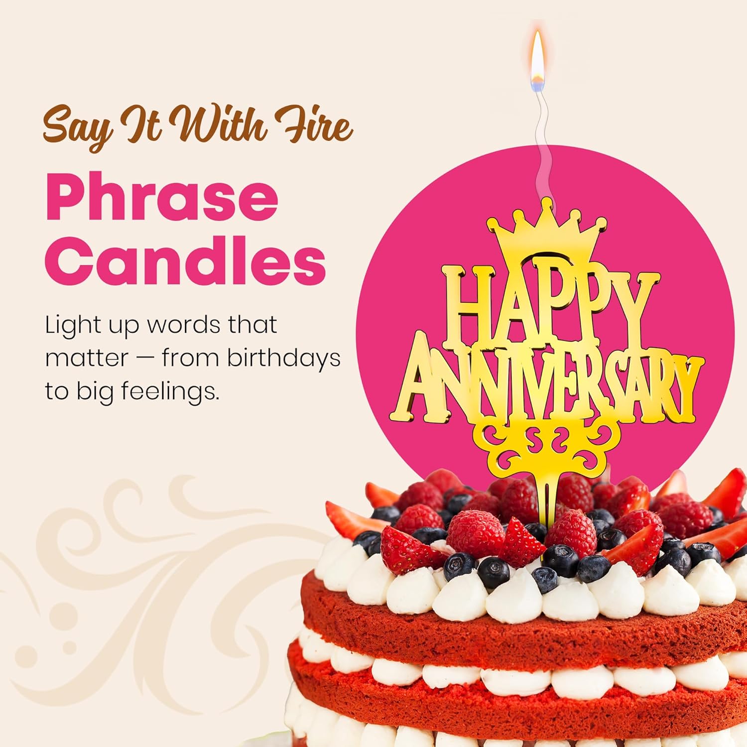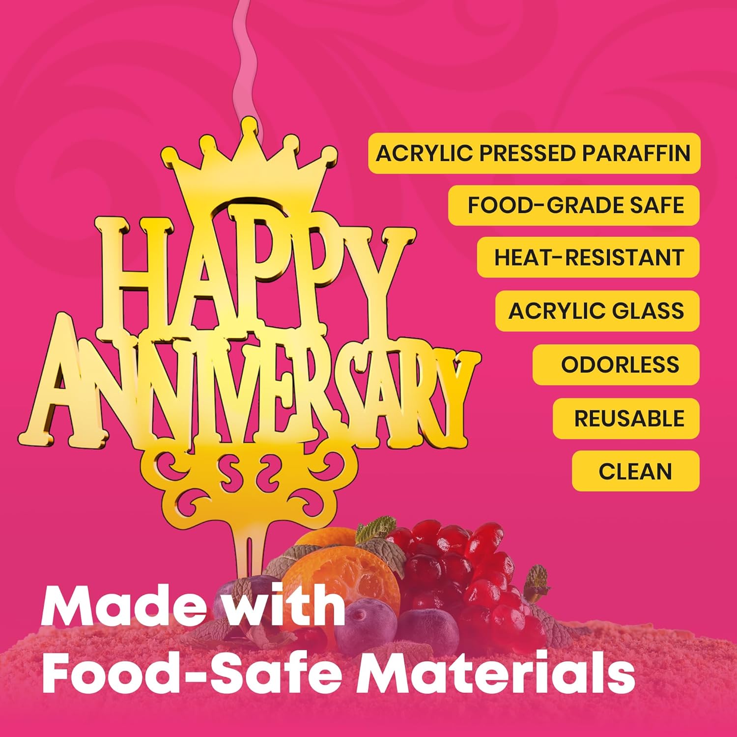 Happy Anniversary Reusable Gold Romantic Cake Candle - Luxury Cake Topper Candle for Birthdays, Weddings & Anniversaries - Reusable Food Safe Acrylic, Shiny Mirror Finish - Birthday Cake Topper