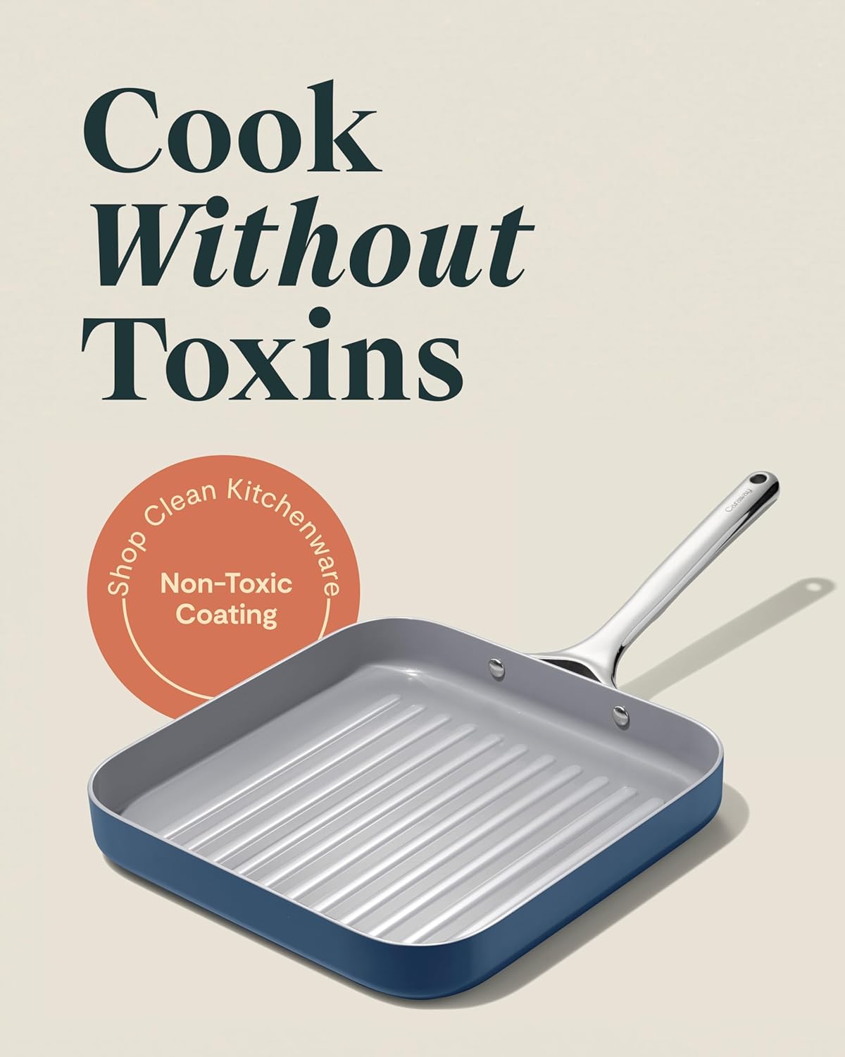 Caraway Square Grill Pan - 11” Grill Pan - Non-Stick Ceramic Coated - Non Toxic, PTFE & PFOA Free - Oven Safe & Compatible with All Stovetops - Navy