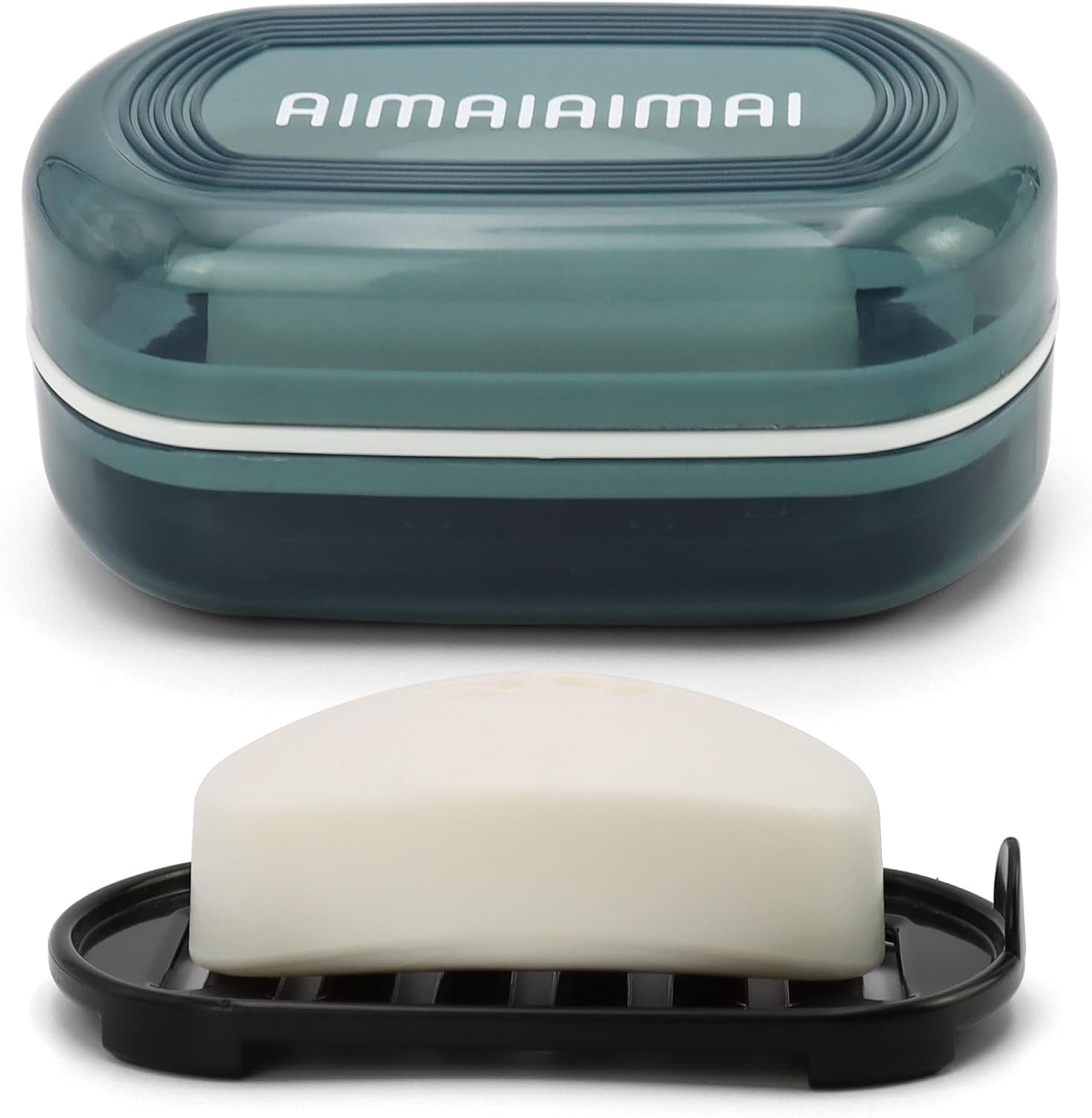 Travel Soap Container, Soap Dish with Lid, Travel Soap Box with Removable Draining Layer, Portable Soap Case for Traveling, Camping, Gym (Blue Style A)