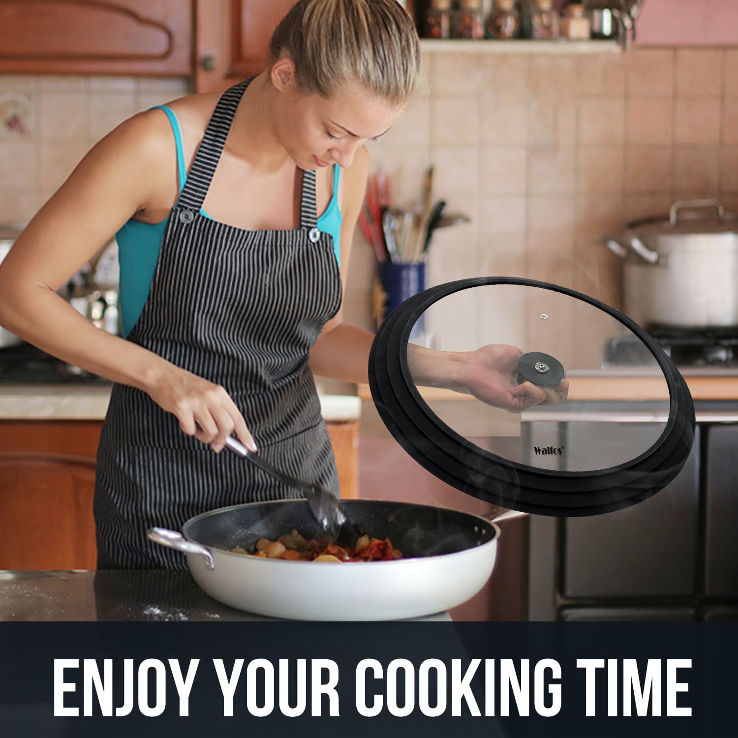 - 【NEW UPGRADED DESIGNED】Our lightweight 3 -in-1 pan lids with vent comes in 3 various sizes. Walfos regular size universal lid Fit ALL pans & pots with diameter 10", 11" and 12". The extra size universal lid Fit ALL pans & pots with diameter 13", 14" and 15".