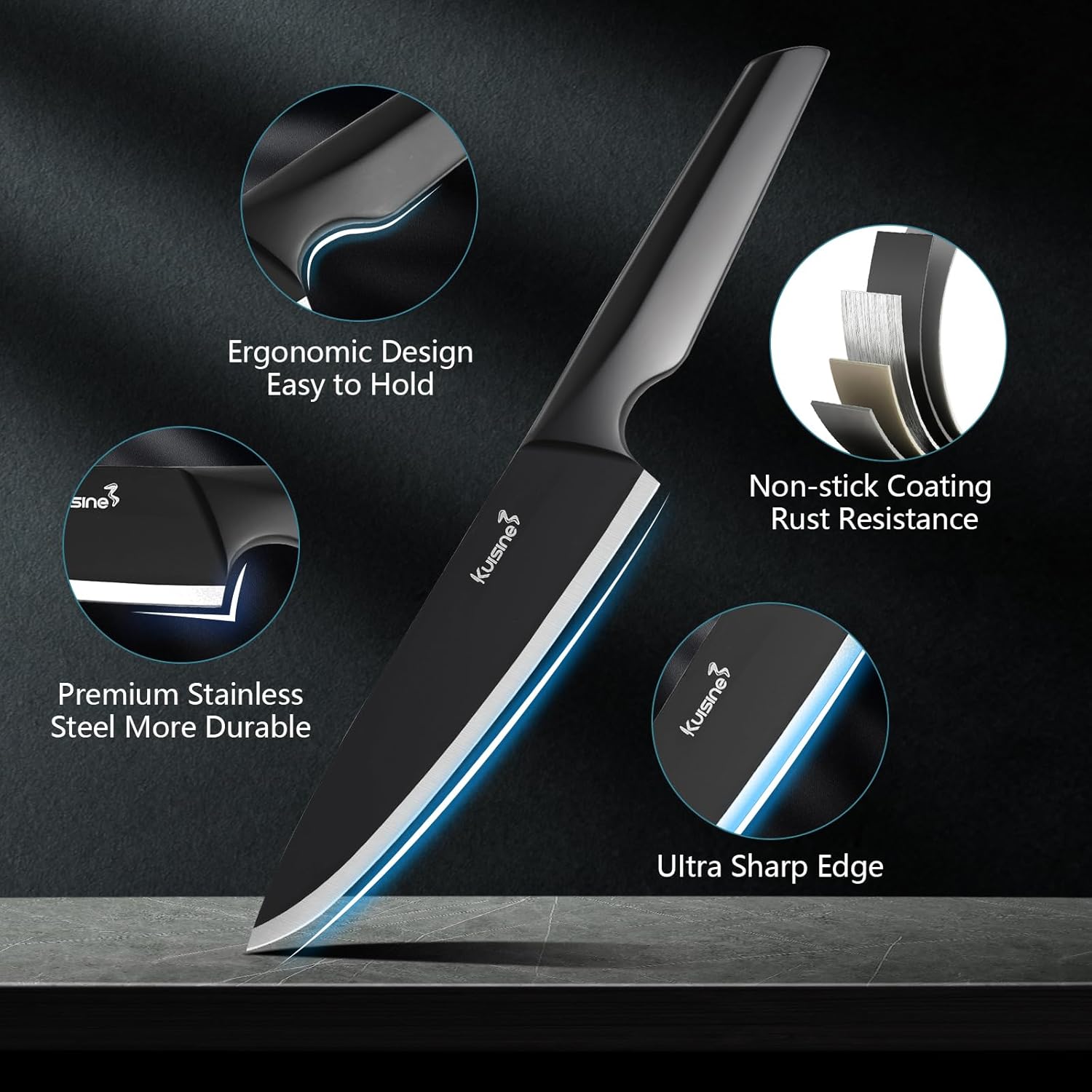 Kuisine Premium Knife Set,One-piece Steel Molding,High Carbon Stainless Steel Ultra Sharp,Non-slip Ergonomic Solid Steel Handle,Built-in Sharpener Knife Block Set,Luxury Gift(15PCS,Black)