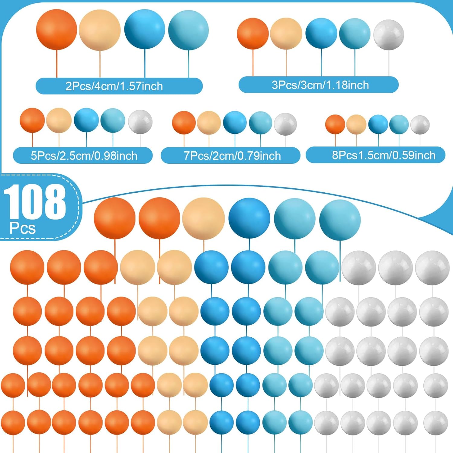108 Pcs Balls Cake Topper DIY Cupcake Insert Foam Balloons for Cake Baking Wedding Anniversary Birthday Decoration(Fresh Colors,Multi Sizes)