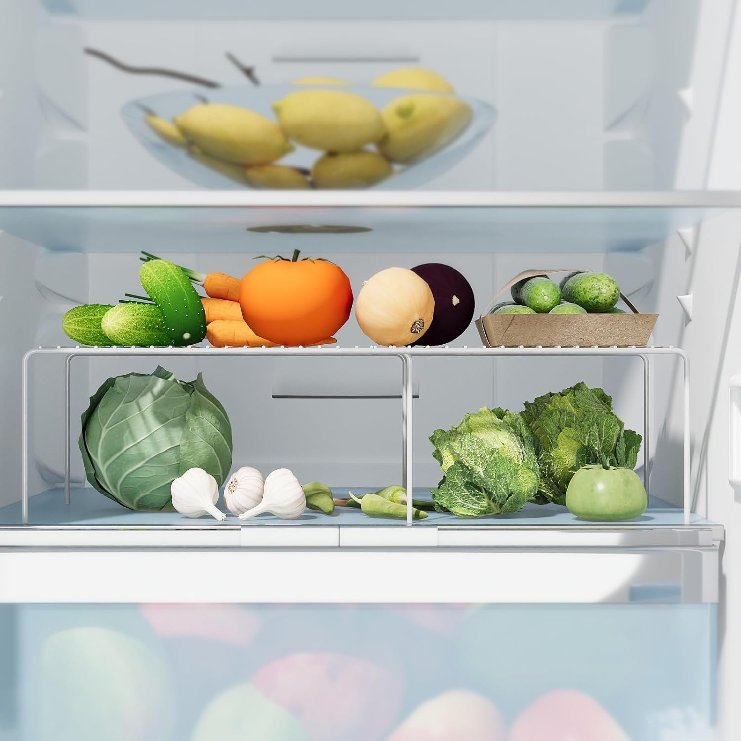 Expandable Storage Shelf, Pantry Organizers and Storage, Adjustable Rustproof Metal Wire Spice Rack, Space Saver Kitchen Storage Shelves for Pan, Pot, Countertop, Drawer, Fridge, Set of 2, White