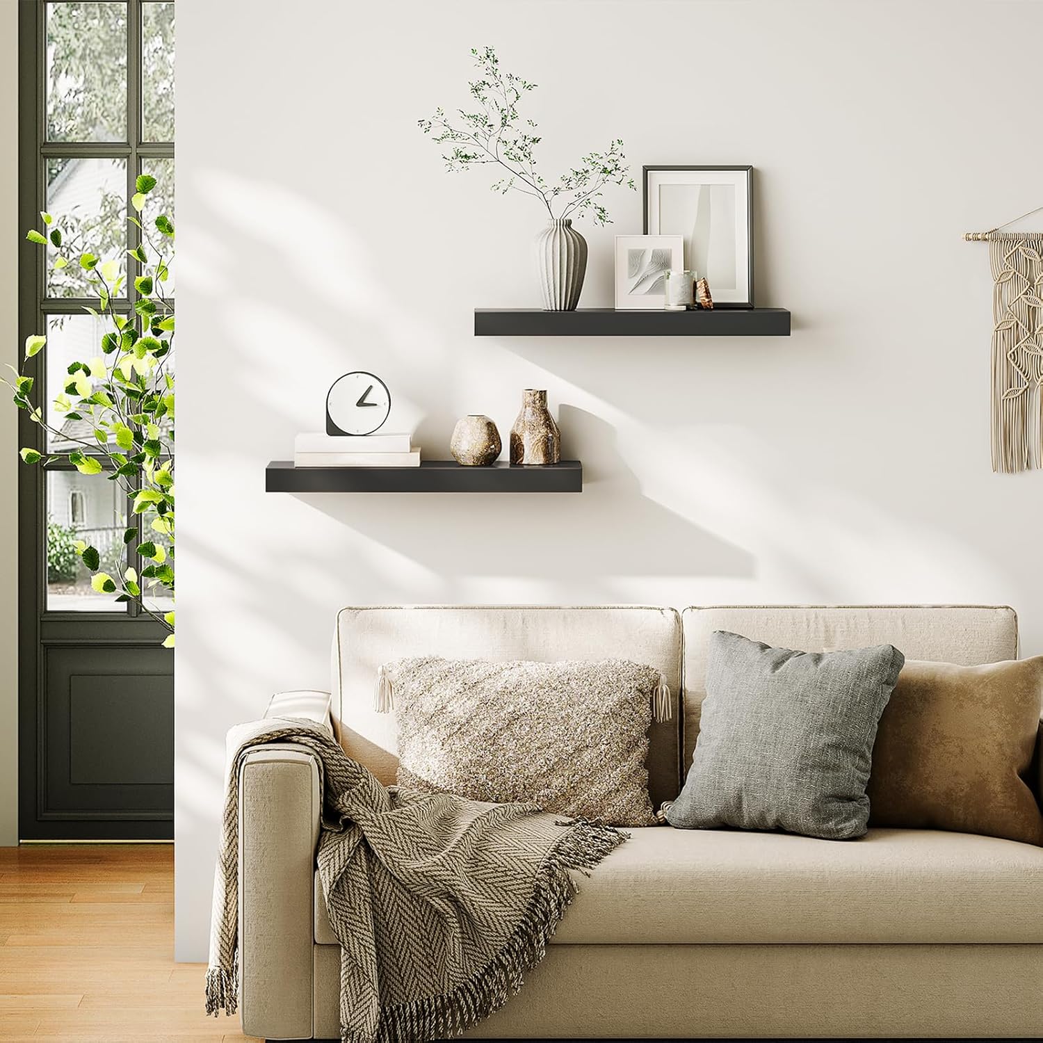 - Exquisite Wall Surface Decoration: Two classic and elegant black wooden shelves can be placed on each wall surface of all household rooms. This floating shelf for room wall is not only for its decoration effect, but also for this wall shelves high practicality. It is an ideal place to display your beloved photos, trophies and other delicate ecorations