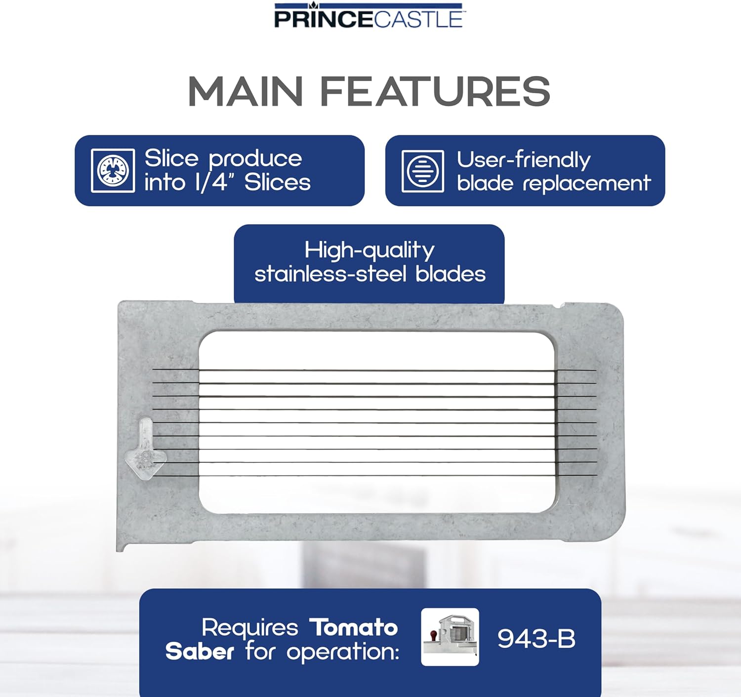 - EFFORTLESS SLICING: Prince Castle Model 943-039A effortlessly slices tomatoes into 1/4" thick slices, saving time and ensuring consistent results.For use with 943-B