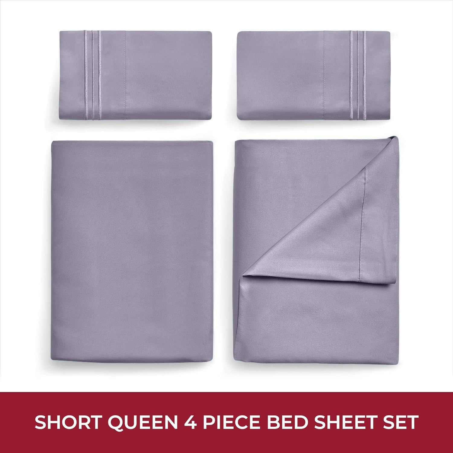 Mellanni RV Short Queen Sheets - 4 PC Iconic Collection Bedding - Hotel Luxury, Extra Soft, Cooling Bed Sheets - Deep Pocket up to 10 inch (RV/Short Queen, Hazy Lilac)