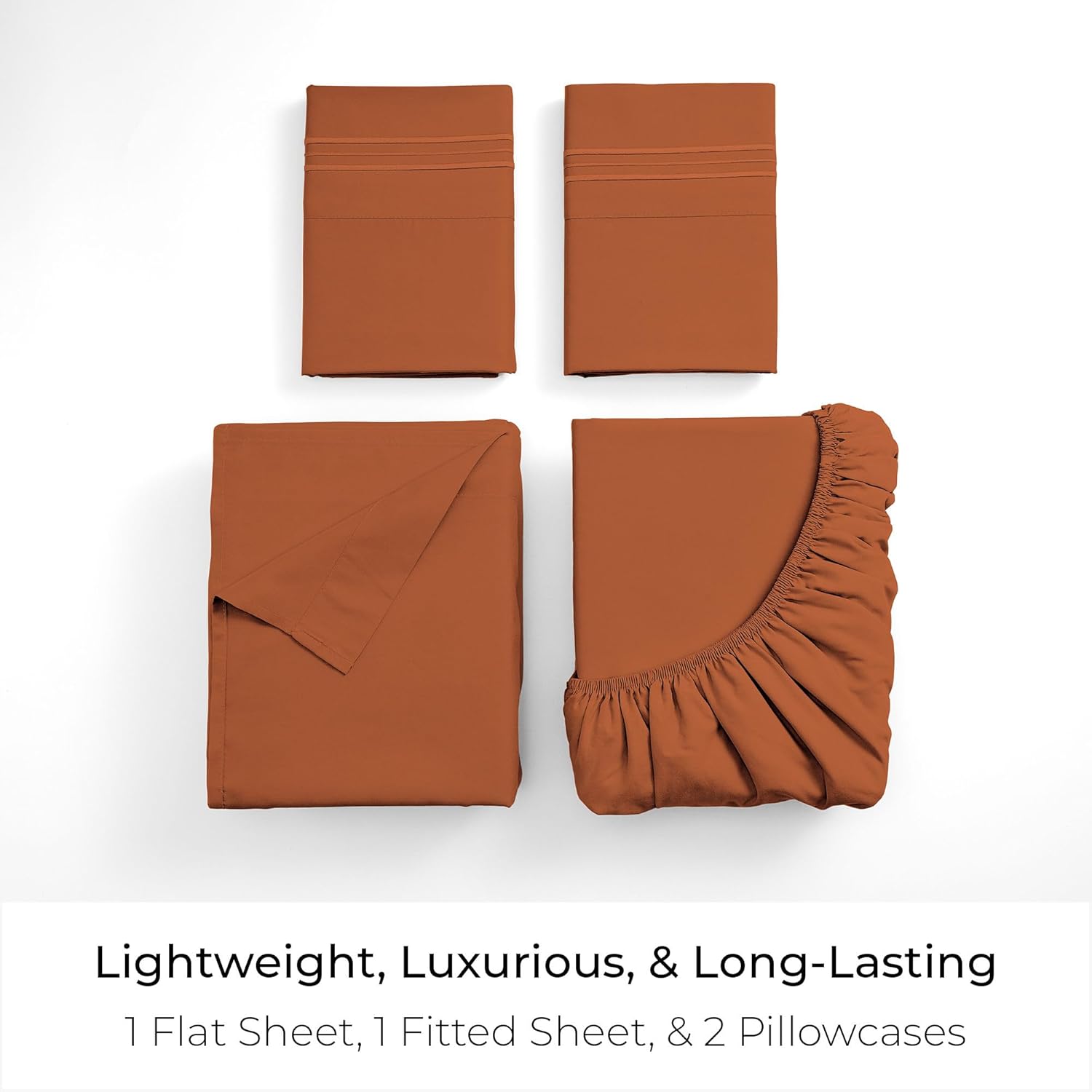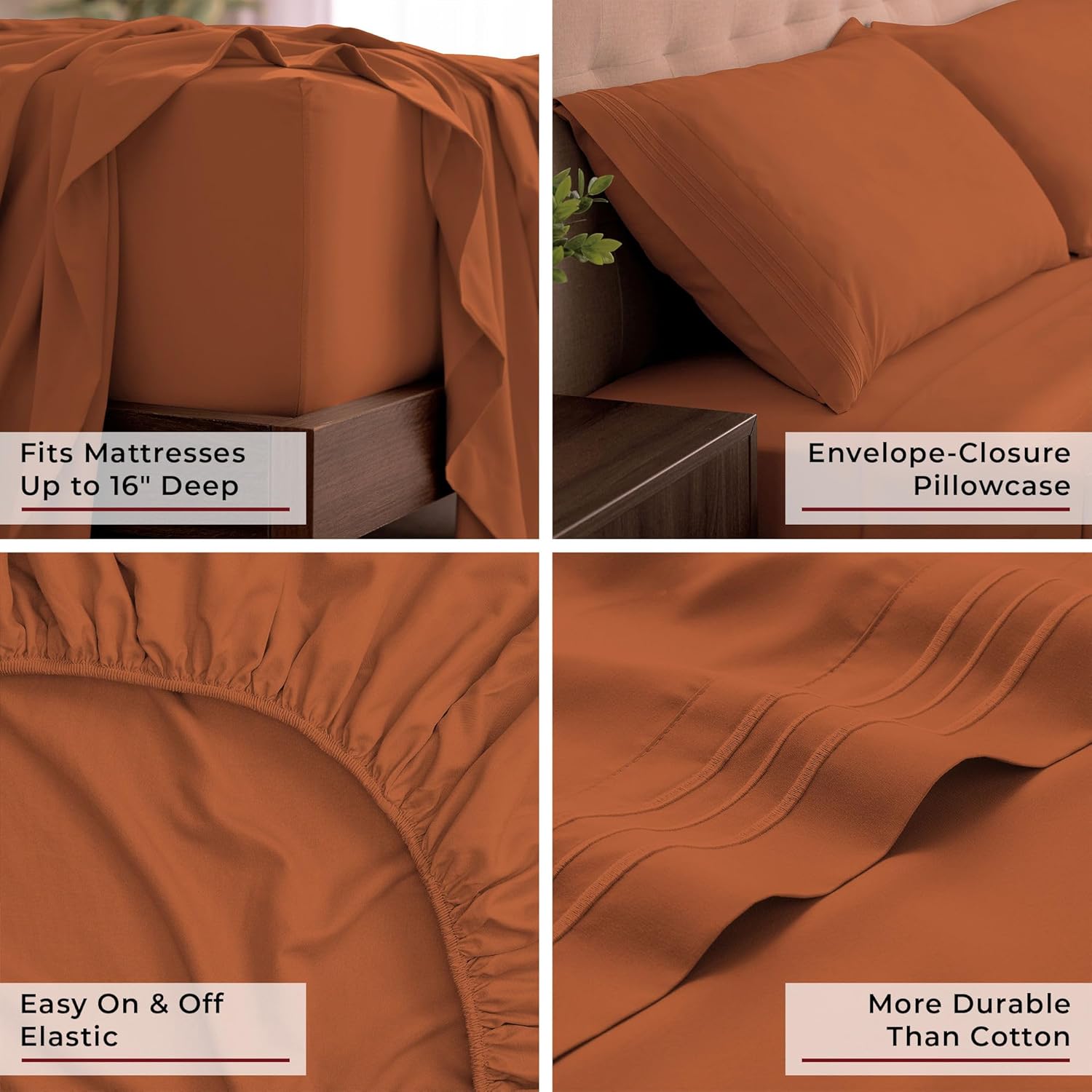 Mellanni King Sheets Set - 4 PC Iconic Collection Bedding - Hotel Luxury, Extra Soft, Cooling Bed Sheets - Wrinkle, Fade, Stain Resistant (King, Terracotta)
