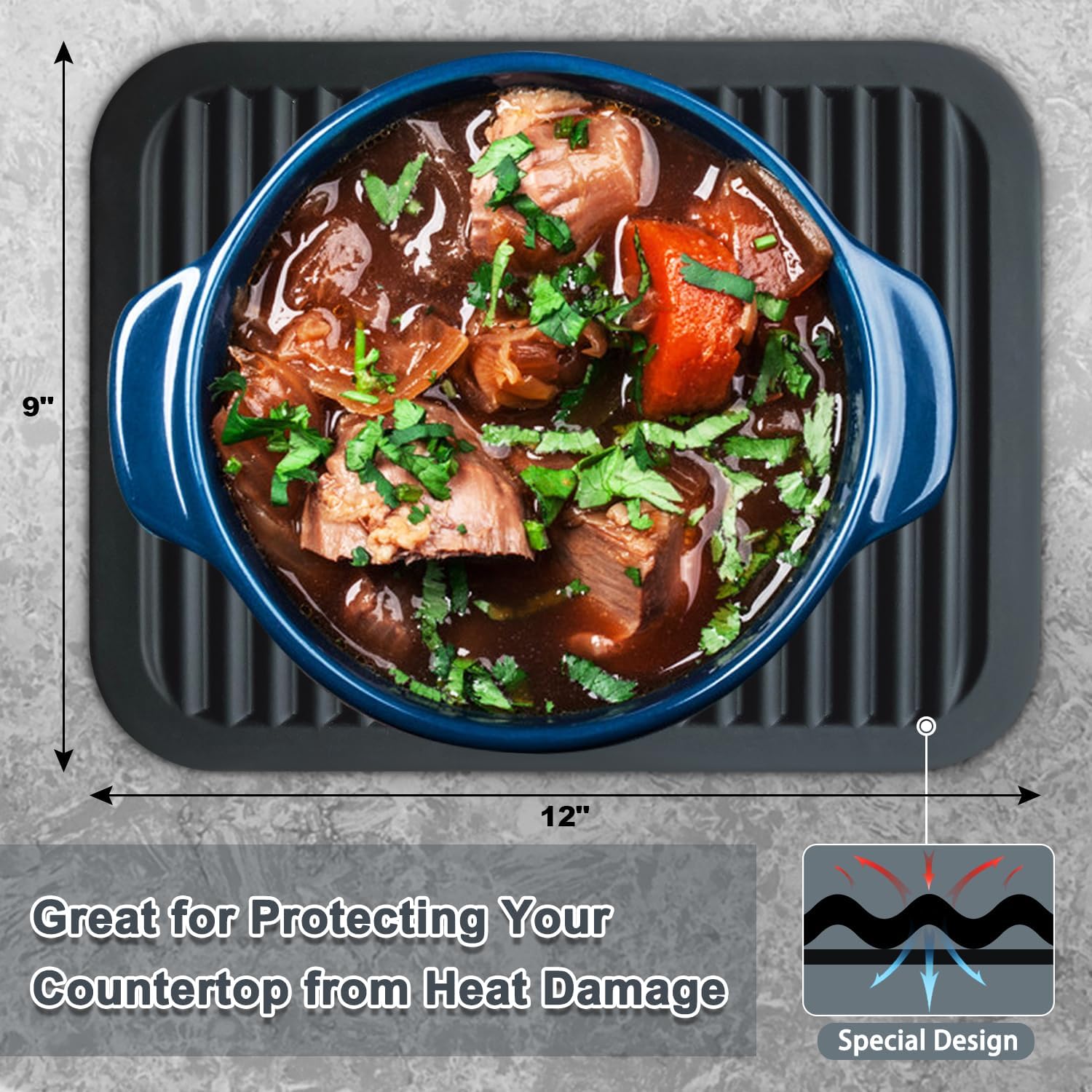 - ULTRA HEAT RESISTANT: Walfos hot pads for kitchen have a temperature range of -104β to 446β. Unlike other flat designs, this trivet's raised-ridges can separate hot pots and pans from the countertops well, protecting your kitchen quartz from scalding. Thick Trivet Size: 16'' x 12'' x 0.22''; 12'' x 9" x 0.22''